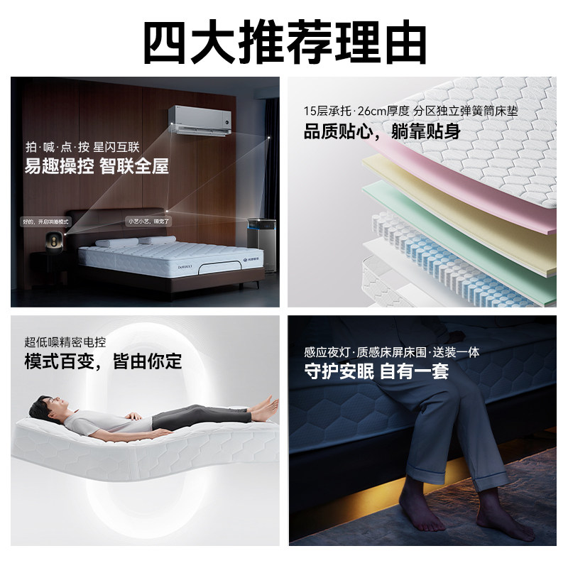 鸿蒙智选智家慕思多功能电动床现代简约卧室双人智能床垫睡魔方