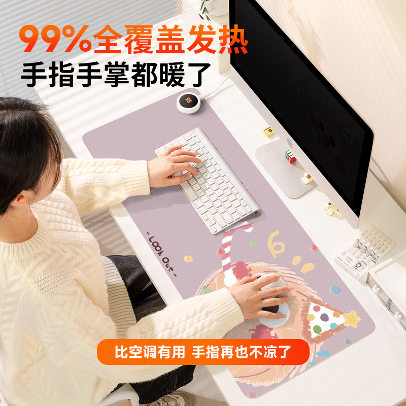 SUYA可爱毛球加热鼠标垫超大发热暖桌垫办公室冬天桌面垫子写字桌垫暖手保暖防水电脑键盘女生电热板智能恒温