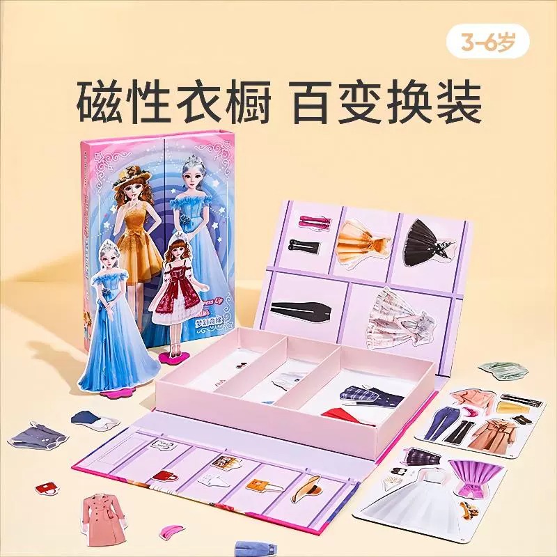磁力换装贴纸玩具公主换装秀儿童可反复换衣服纸娃娃磁性女孩贴画
