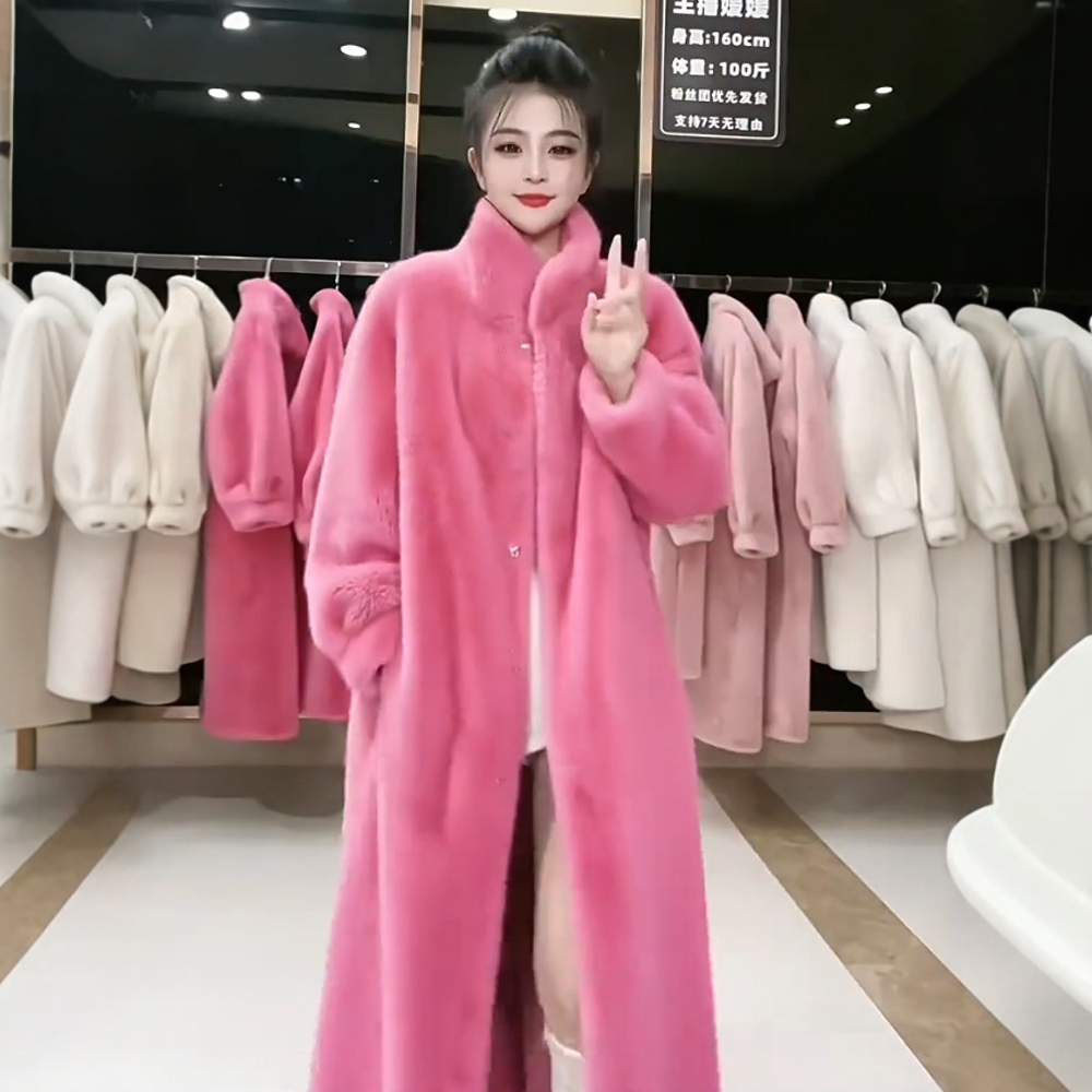 海宁皮草整貂皮水貂毛外套女长款过膝皮毛一体年轻款大衣小母貂冬