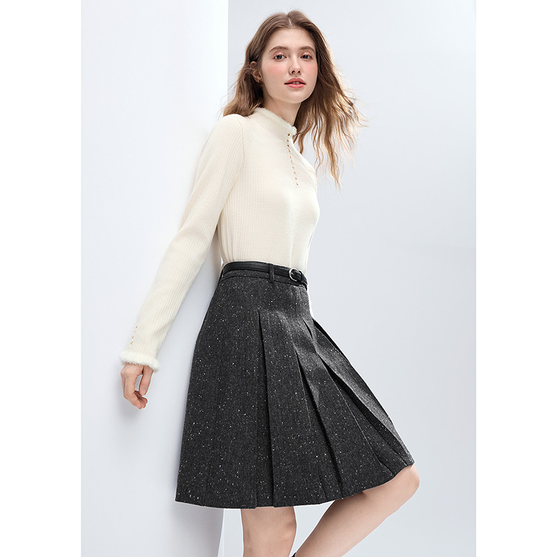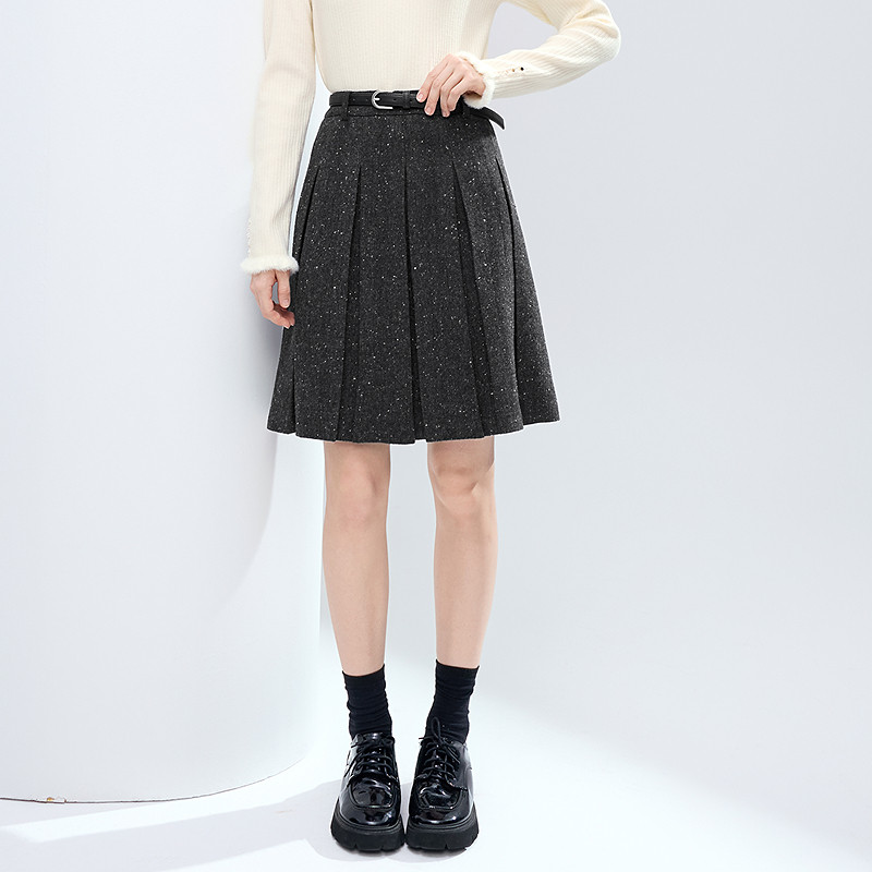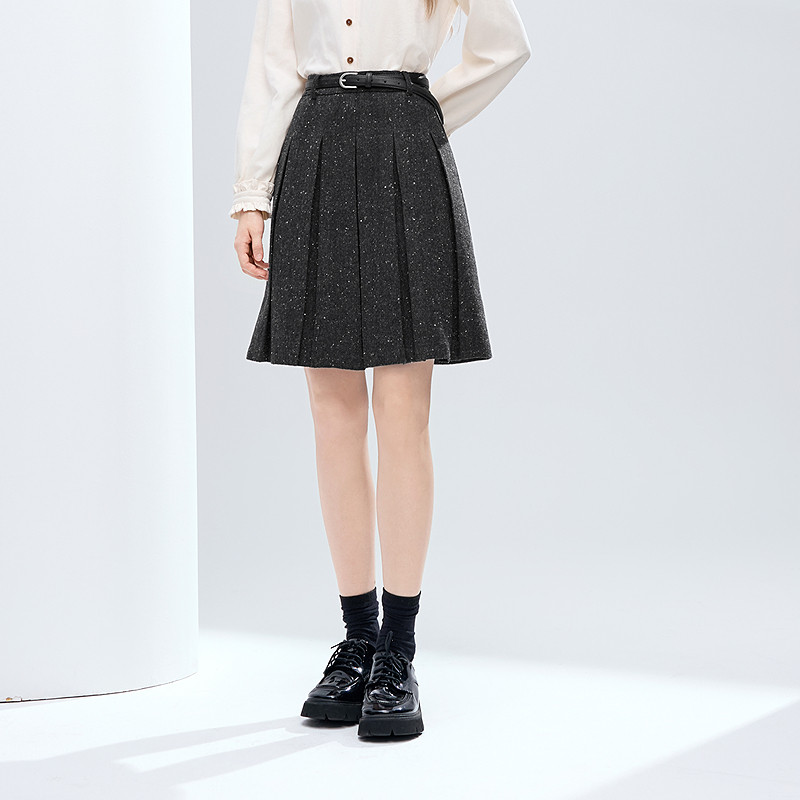 betu百图高级感通勤风半身裙女百褶裙2025年冬季新款高腰半截裙