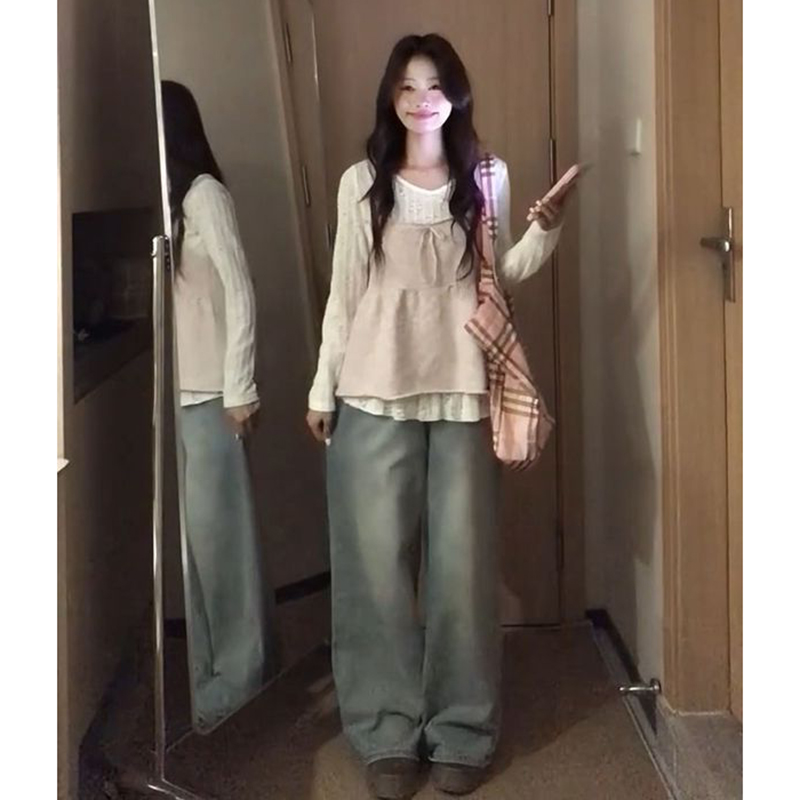 日系温柔淑针织系带吊带背心女搭配打底长袖衬衫上衣秋季两件套装
