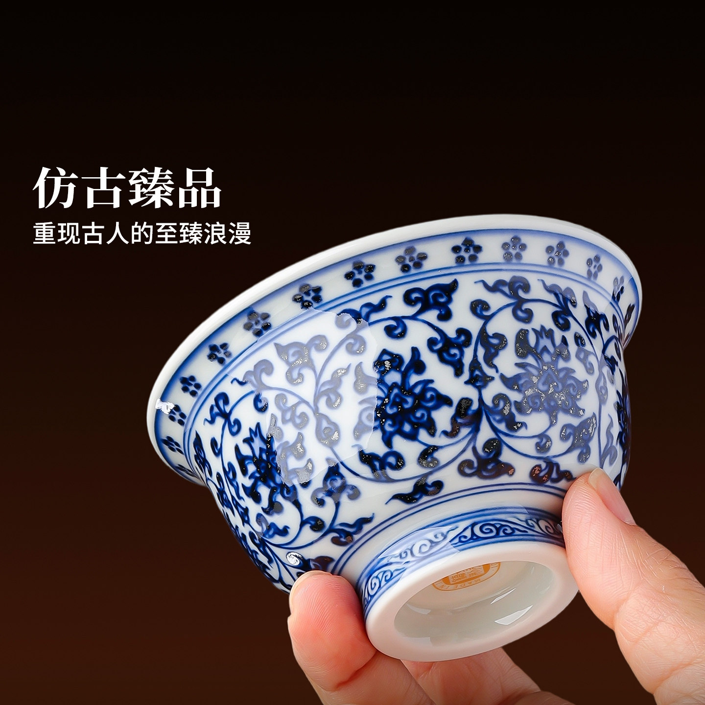 景德镇官方陶瓷茶杯手绘青花缠枝莲主人杯喝茶杯压手杯送长辈