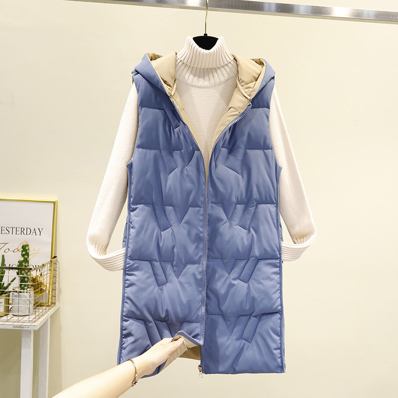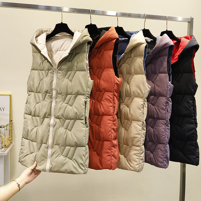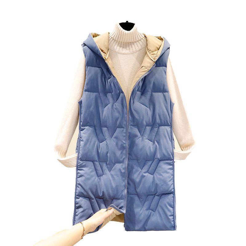 羽绒棉马甲女中长款2025秋冬新款韩版两面穿马夹修身显瘦坎肩外套