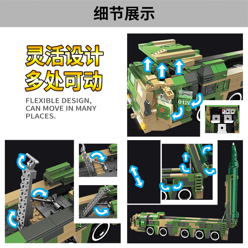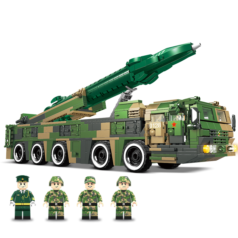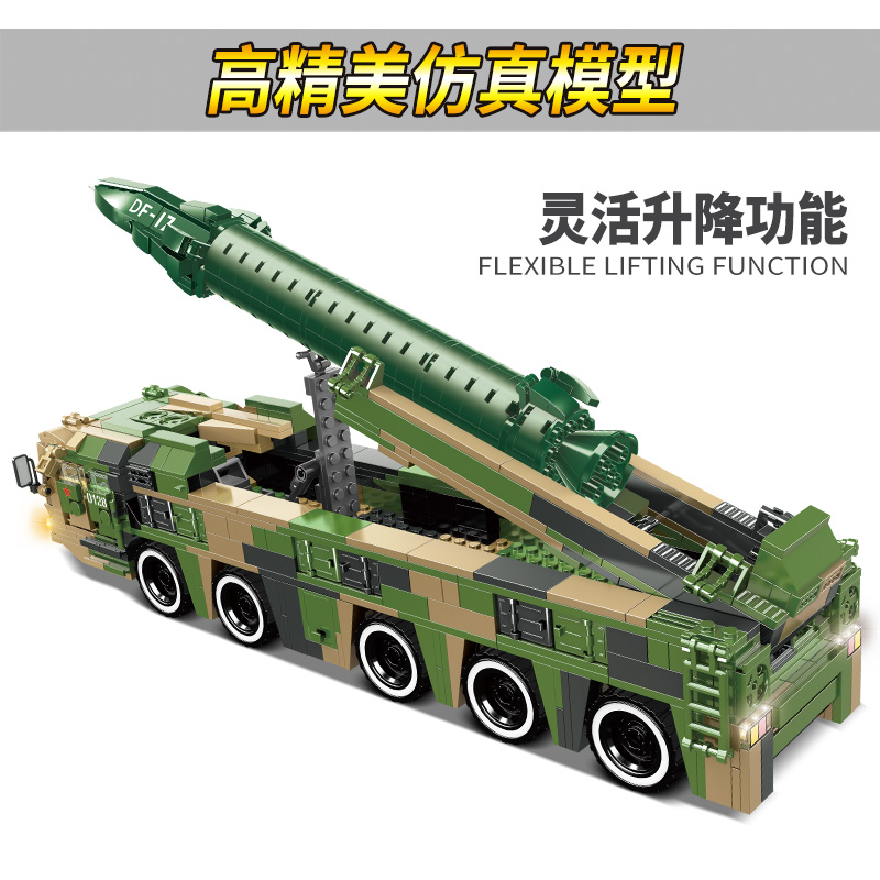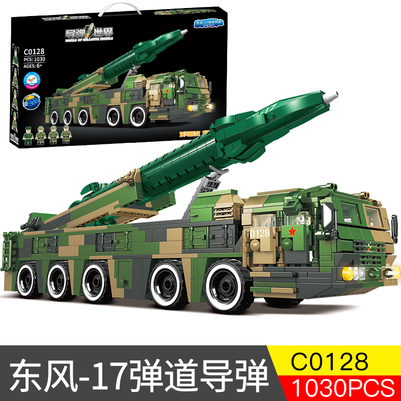 沃马军事玩具儿童拼装积木导弹世界东风-17弹道导弹战车模型C0128