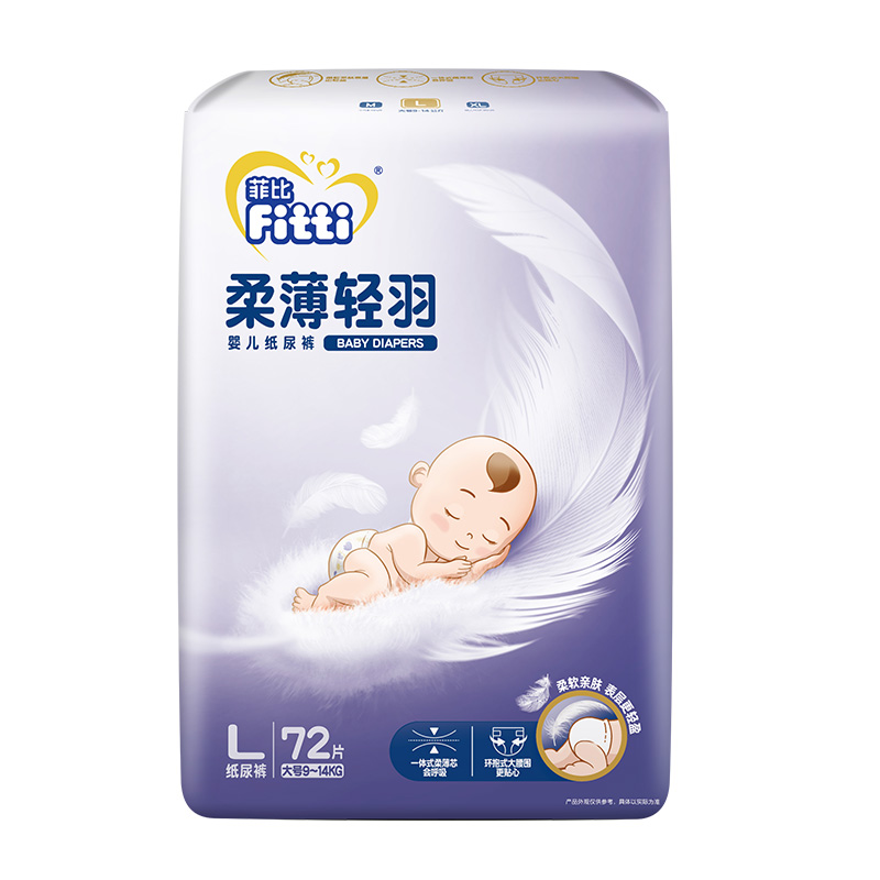 菲比柔薄轻羽纸尿裤大码L72片男女宝宝婴儿纸尿裤超薄透气尿不湿