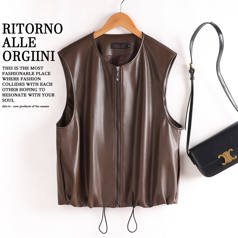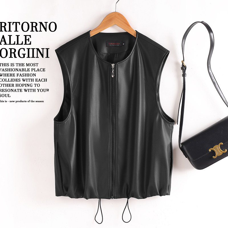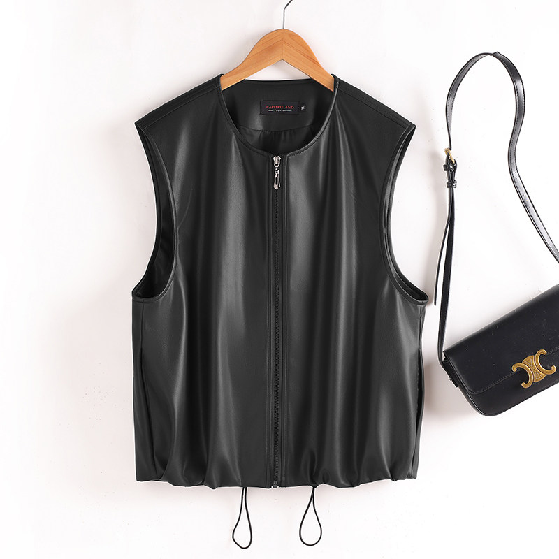 海宁真皮皮衣马甲女短款外穿坎肩2025秋新款圆领显瘦百搭无袖背心
