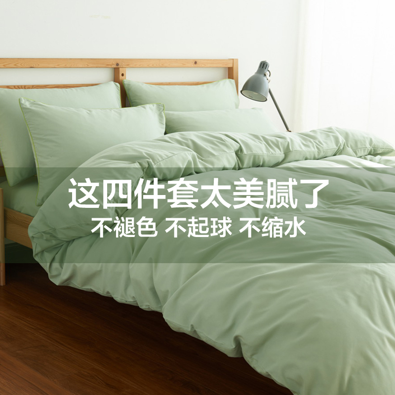 简约纯色四件套双拼素色学生宿舍被套床单三件套1.5/1.8m床上用品