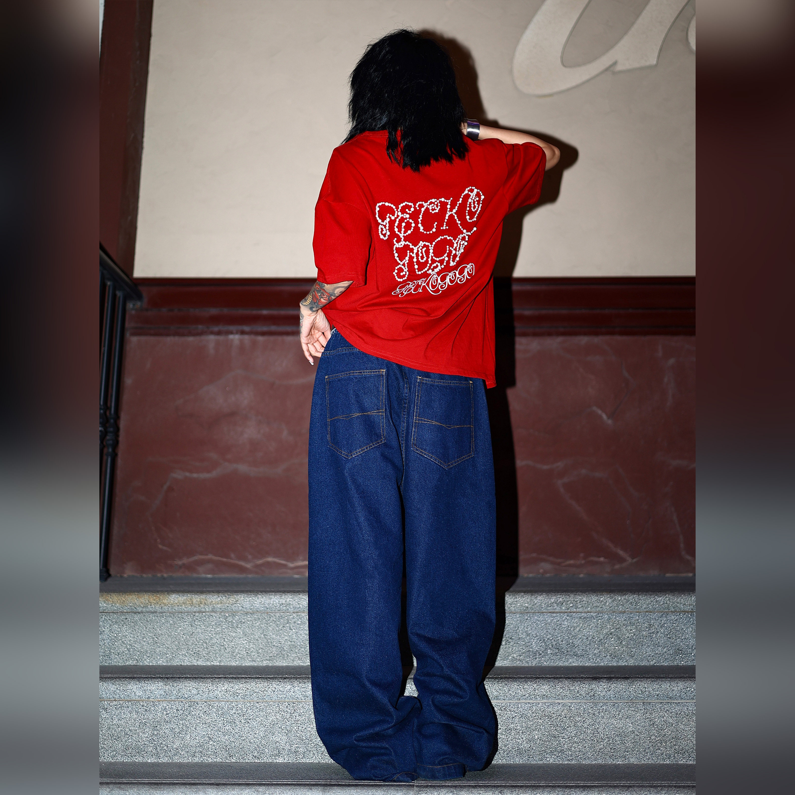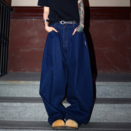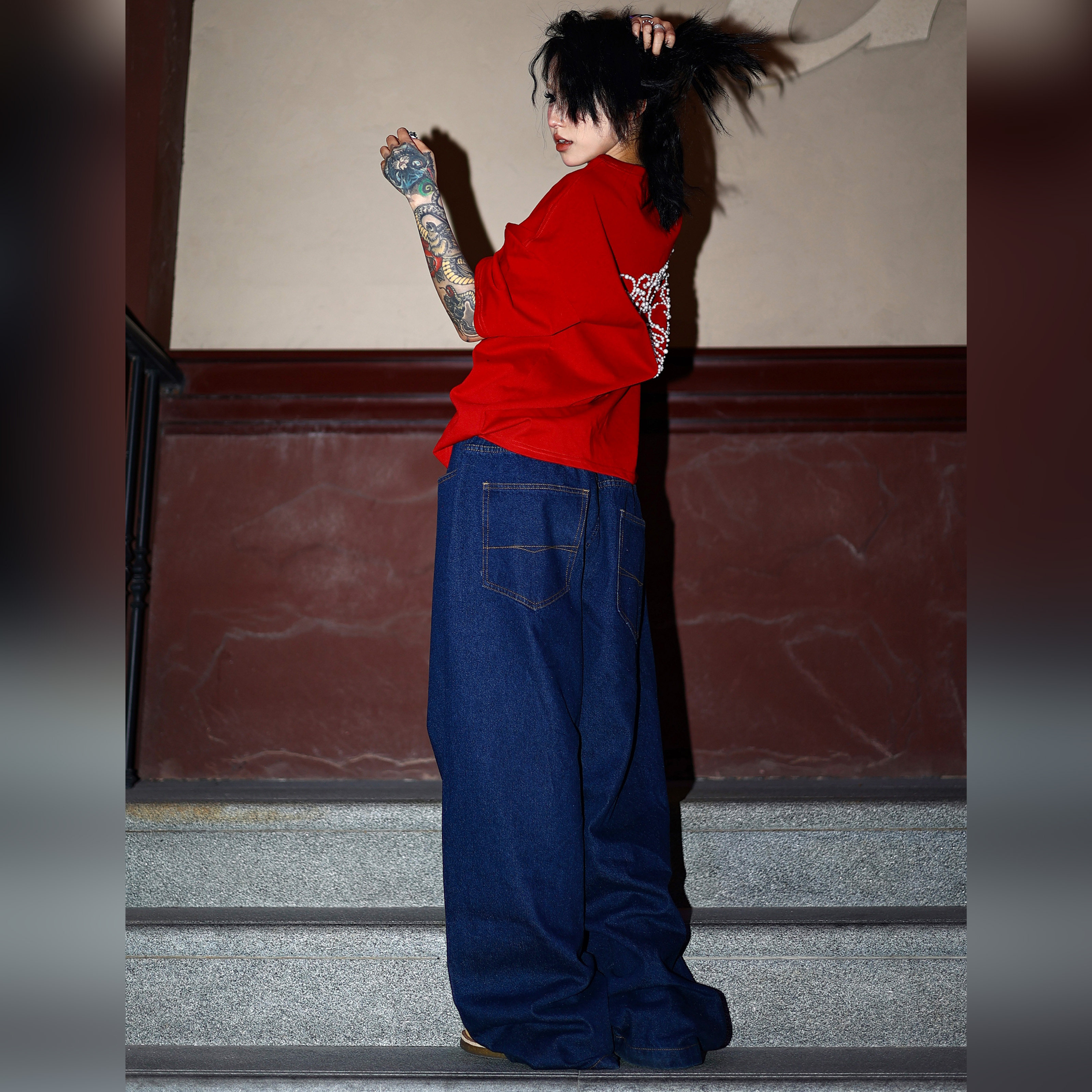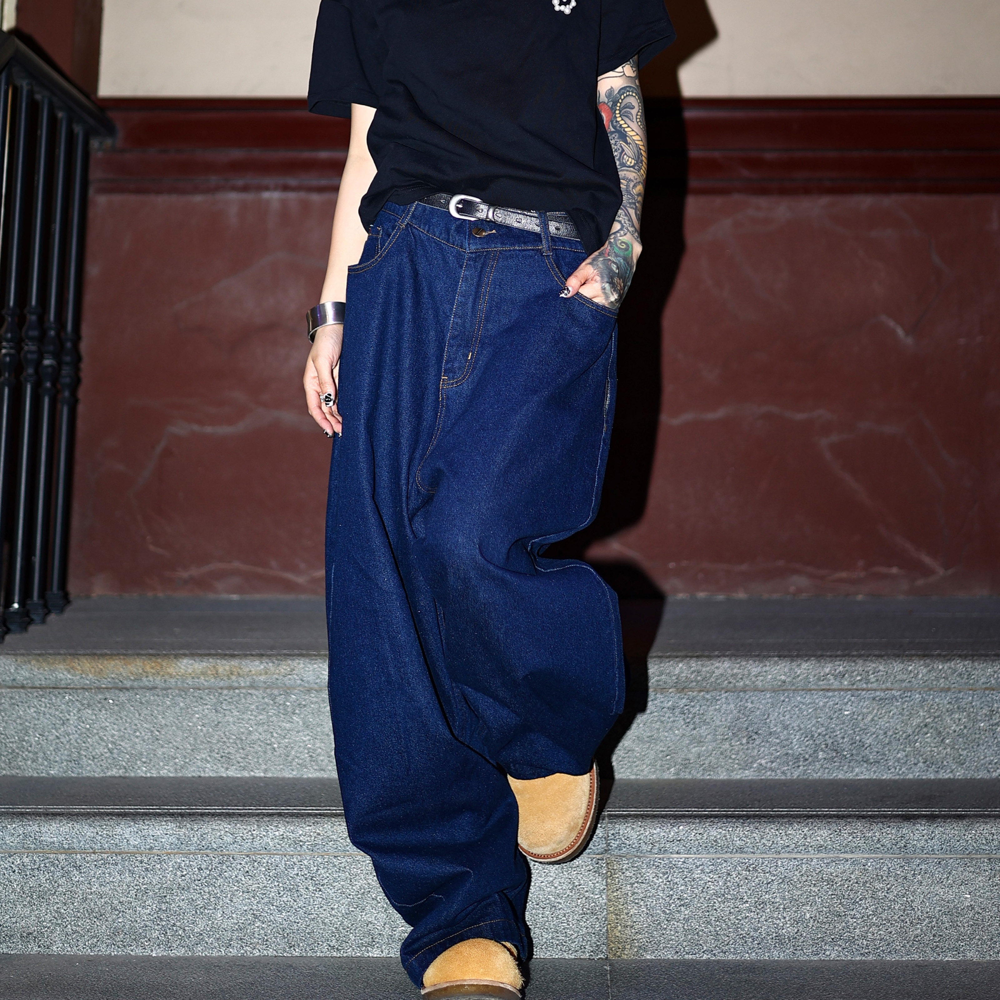 GECKOGOGO美式街头水洗酵素防掉色松弛拖地弯刀牛仔裤男女同款