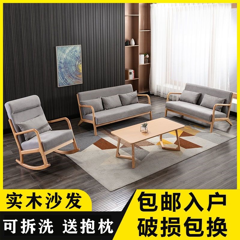 布艺沙发北欧风格实木小户型组合简约现代公O寓客酒店厅办公室沙