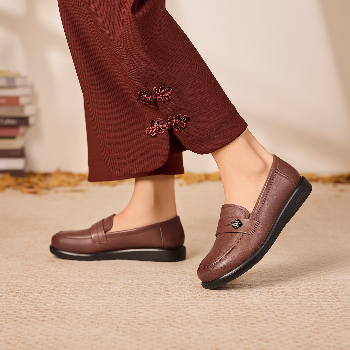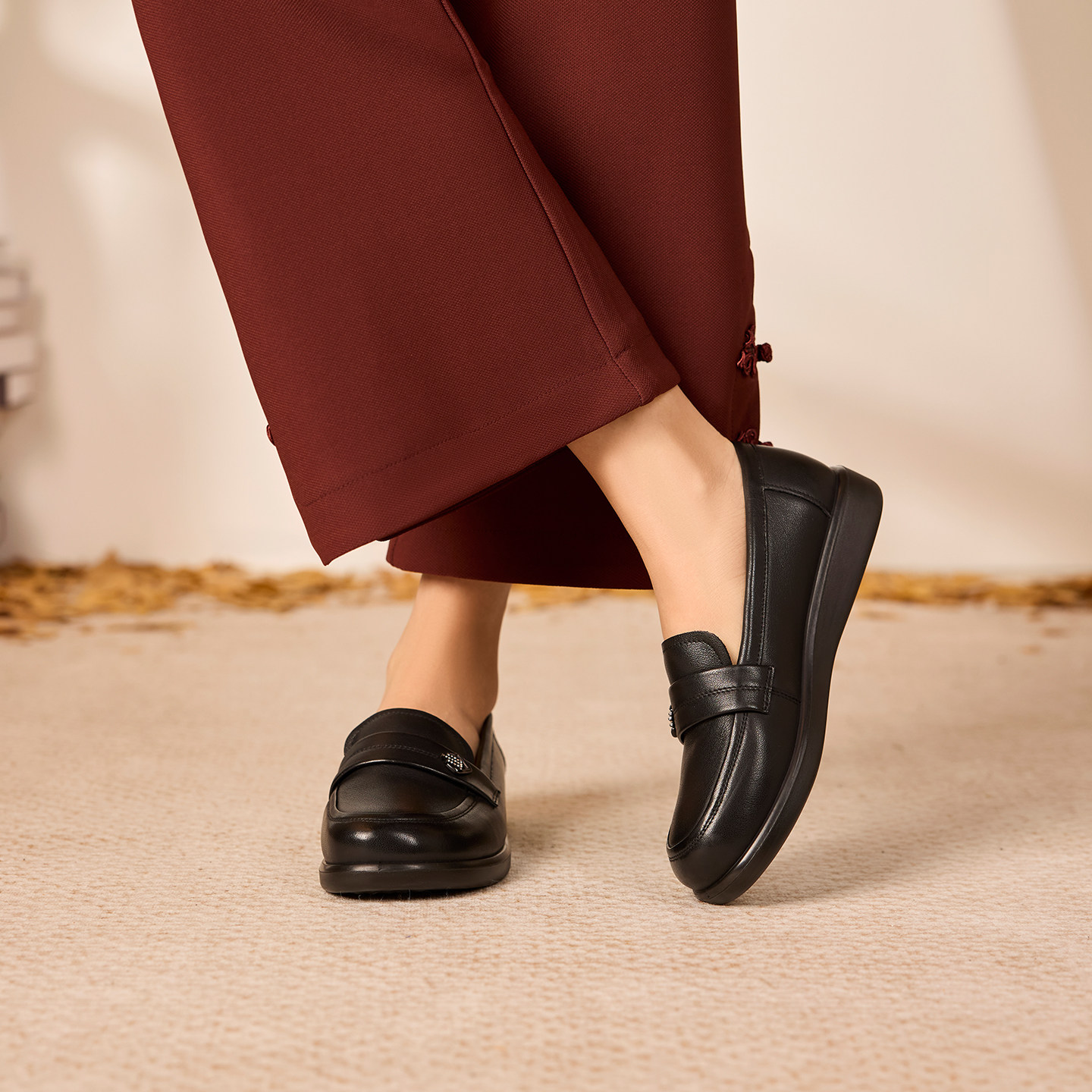 奥康 女鞋2025秋季舒软鞋真皮一脚蹬浅口单鞋妈妈鞋平底门店发货