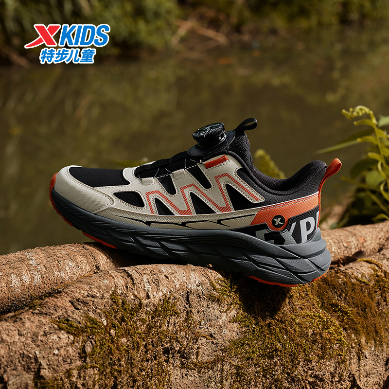 特步童鞋儿童春秋款运动鞋保暖户外登山鞋中大童旋转纽扣式跑步鞋