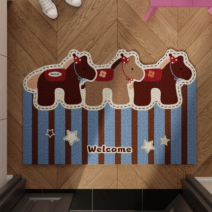 美拉德入户门地垫丝圈地毯复古风马年玄关可裁剪防滑耐脏脚垫天津