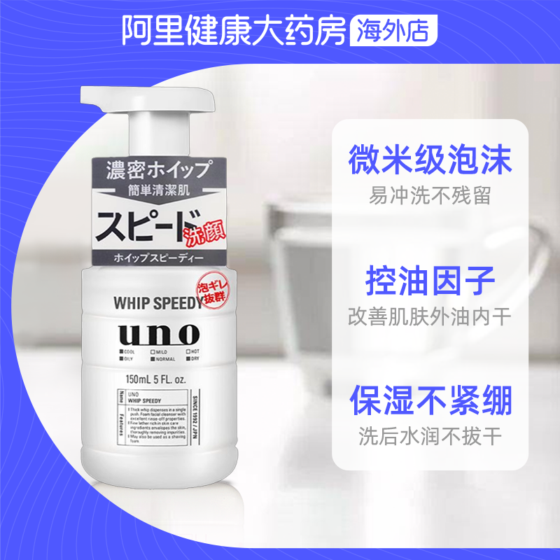 日本资生堂UNO吾诺洗面奶男士专用泡沫祛痘控油保湿去黑头洁面乳