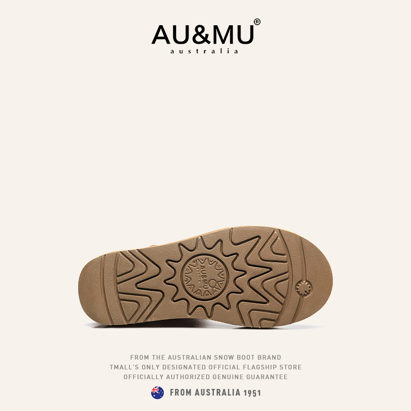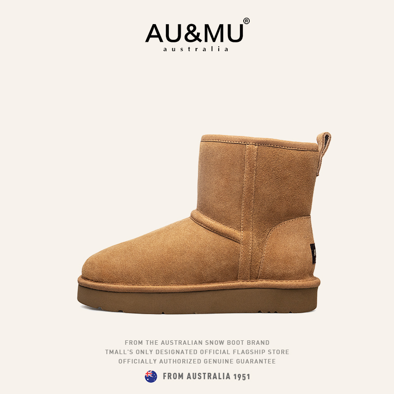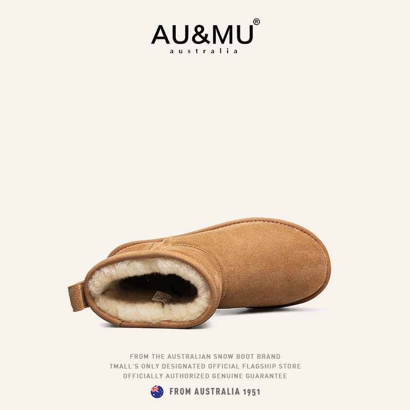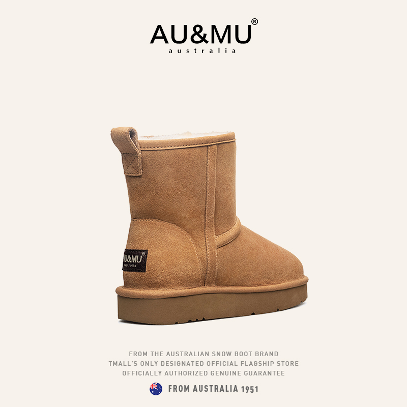 AUMU经典中短筒雪地靴 真羊皮毛一体 2025新款冬季绒加厚黑色女鞋