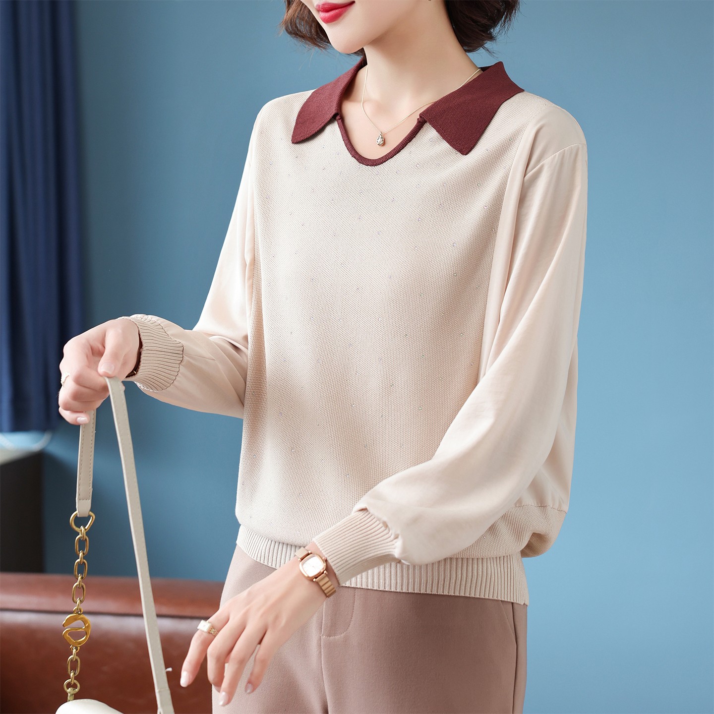 妈妈春秋洋气打底小衫中年女装秋装新款上衣服中老年休闲长袖T恤