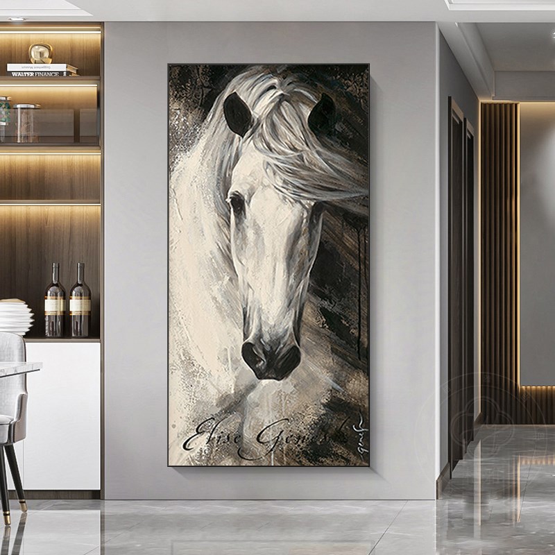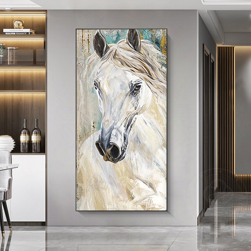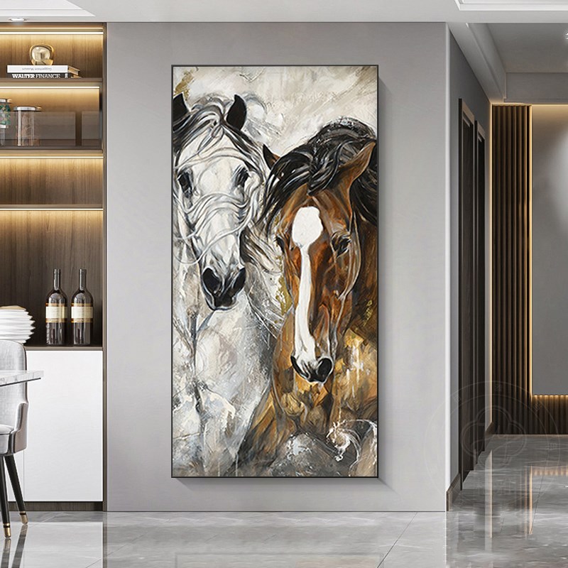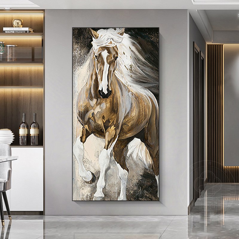 马油画挂画客厅玄关沙发背景过道抽象动物现代轻奢装饰画马到功成