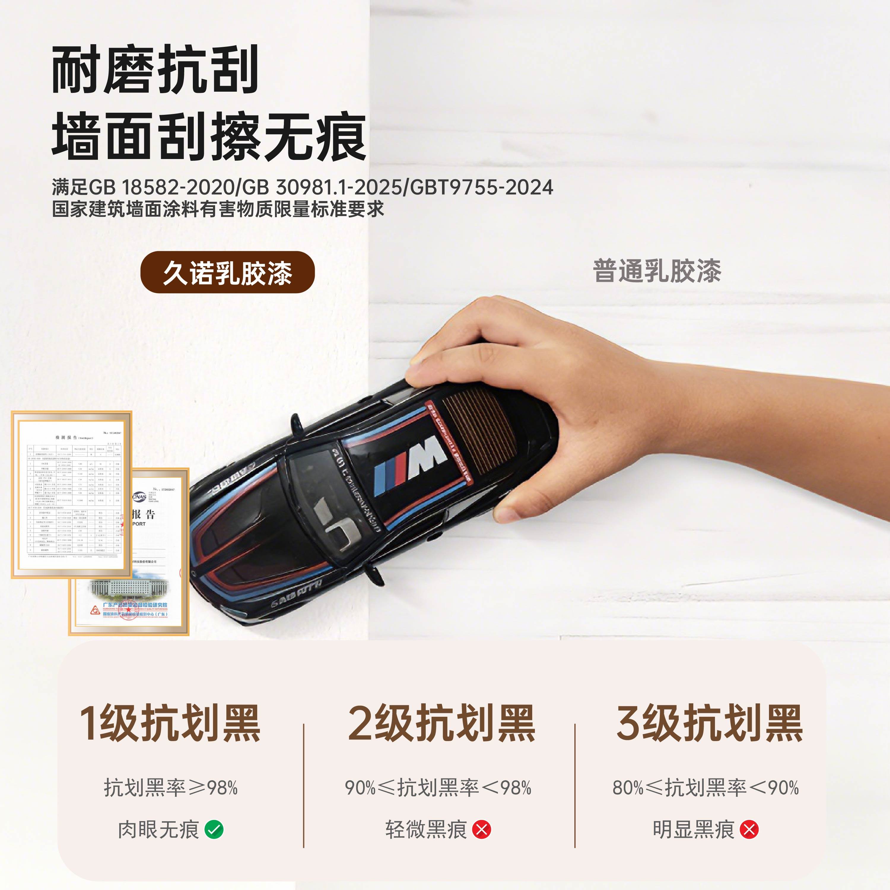 久诺环保净味乳胶漆即刷即住家用室内墙面修复刷白墙涂料耐磨耐刮