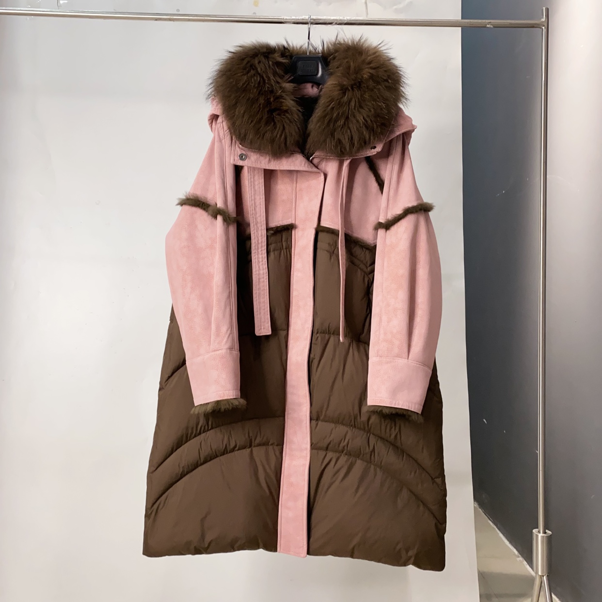 貉子毛领中长兔皮毛一体+鹅绒加厚侧插口袋抽绳皮草外套女525长96