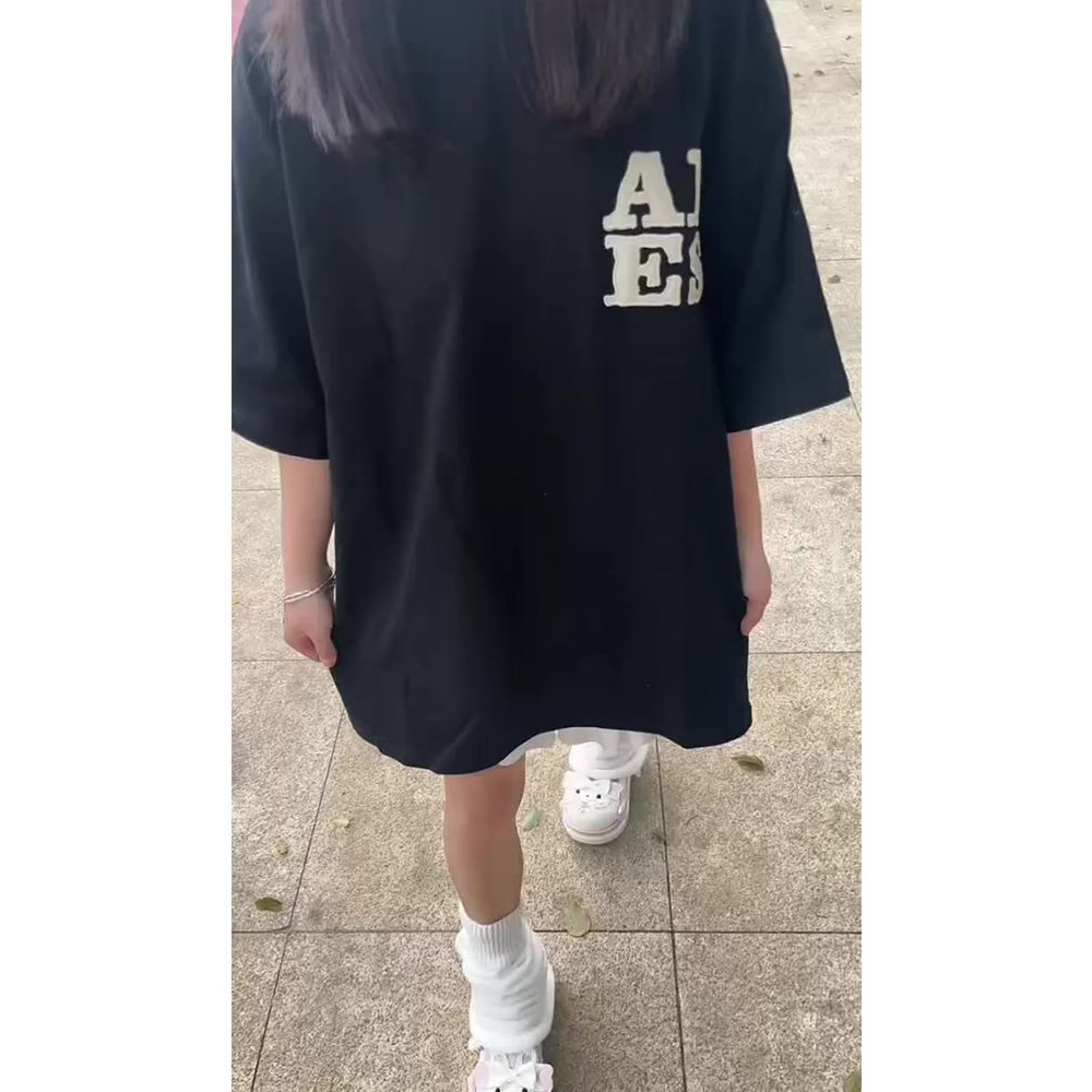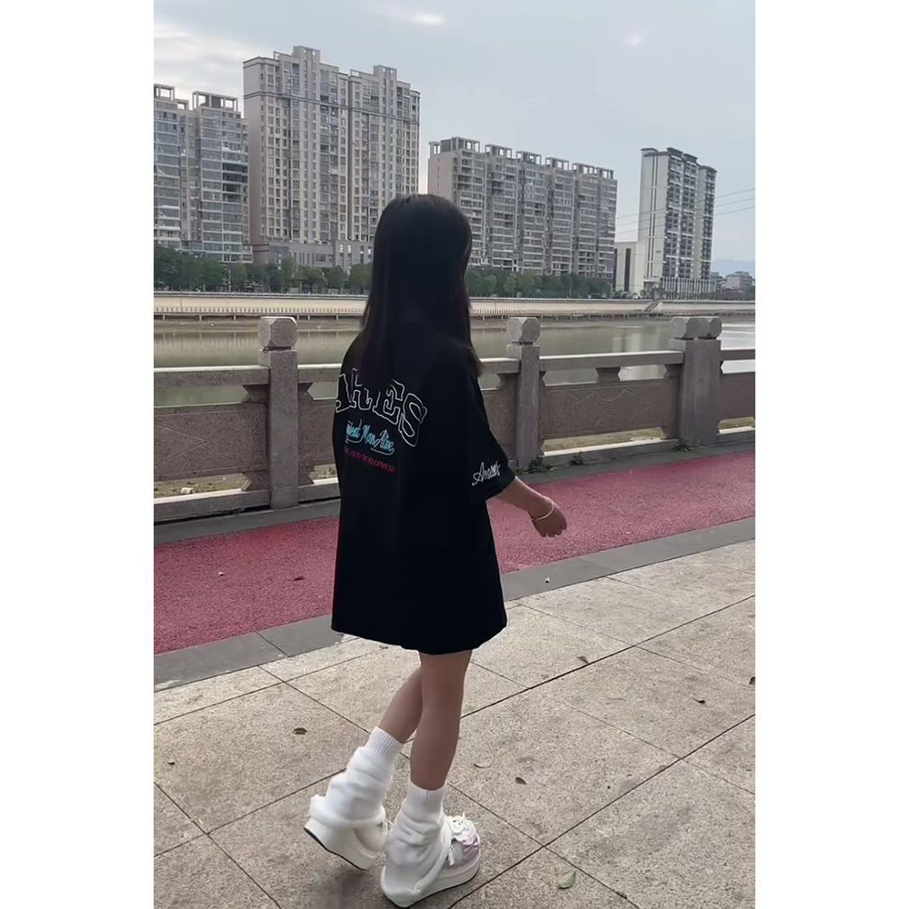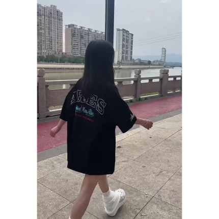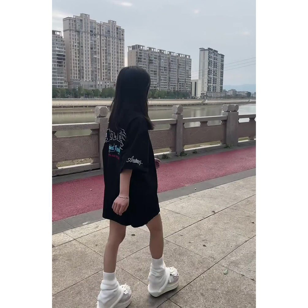 国潮美式字母刺绣短袖t恤女夏季小众设计感oversize潮牌宽松上衣