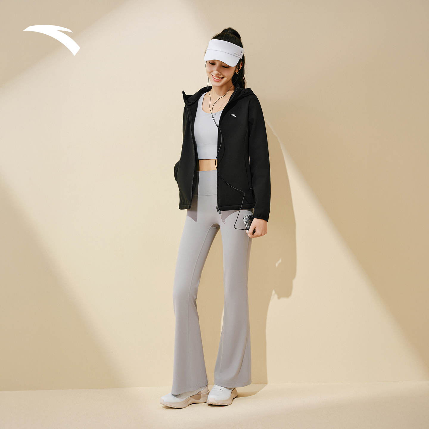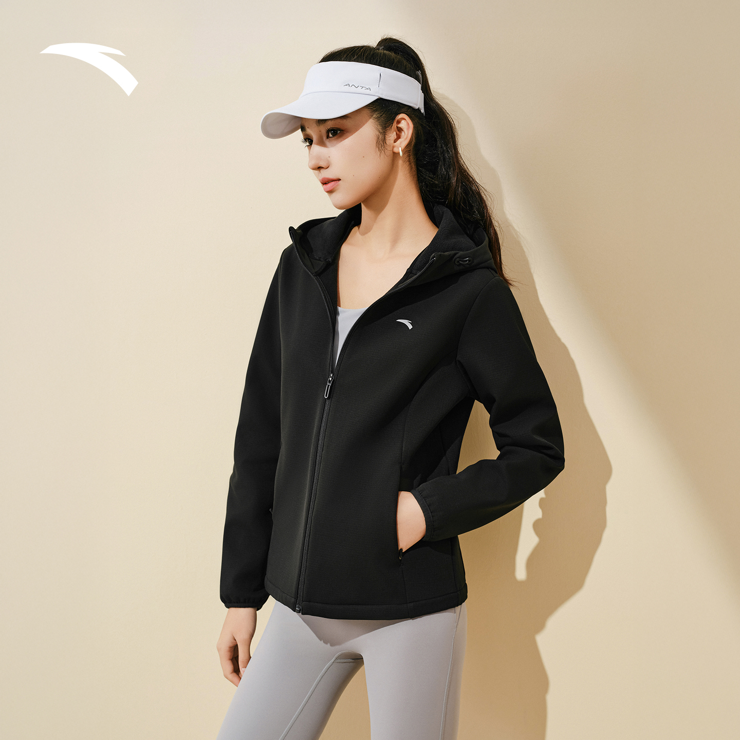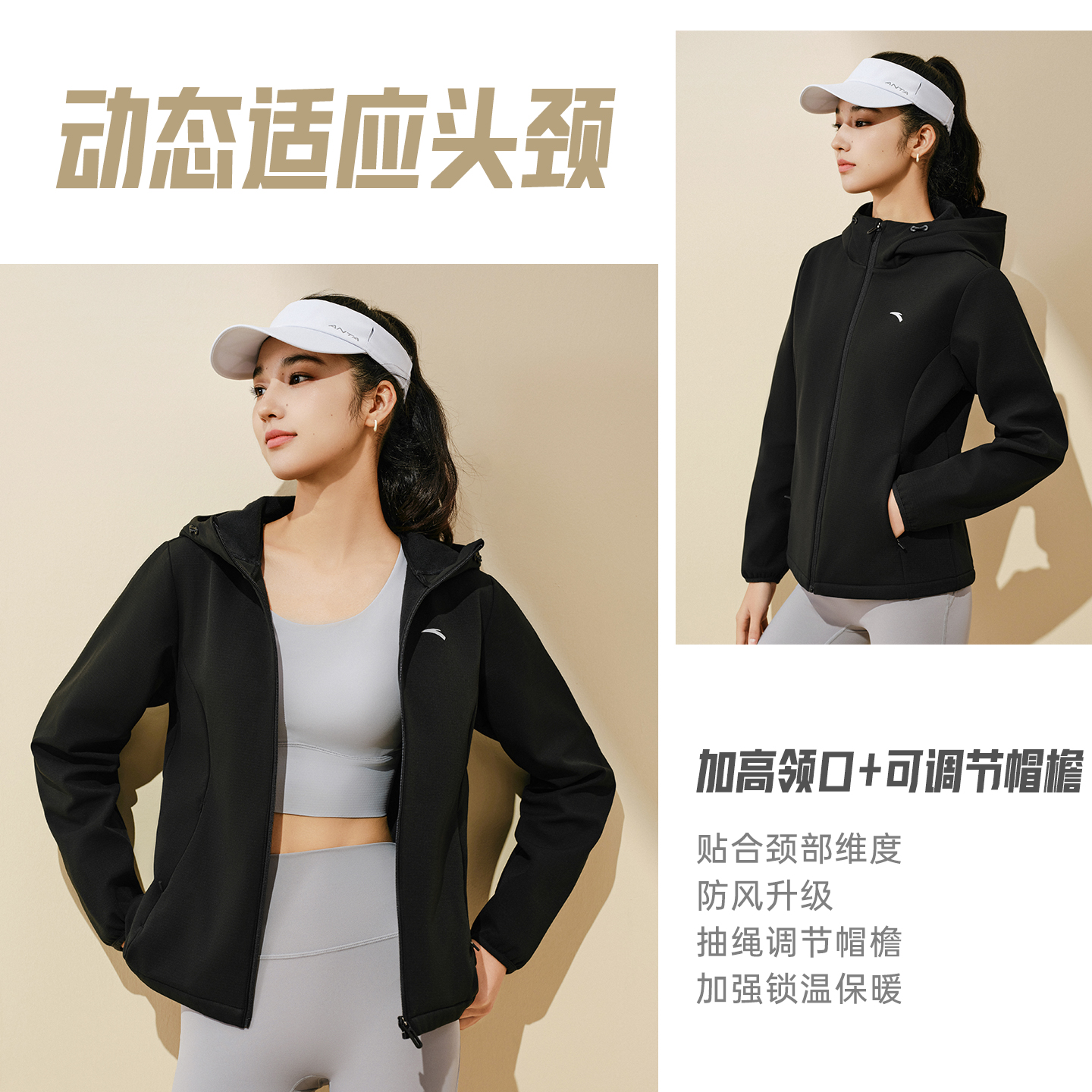 安踏鱼骨外套女款加绒保暖连帽衫