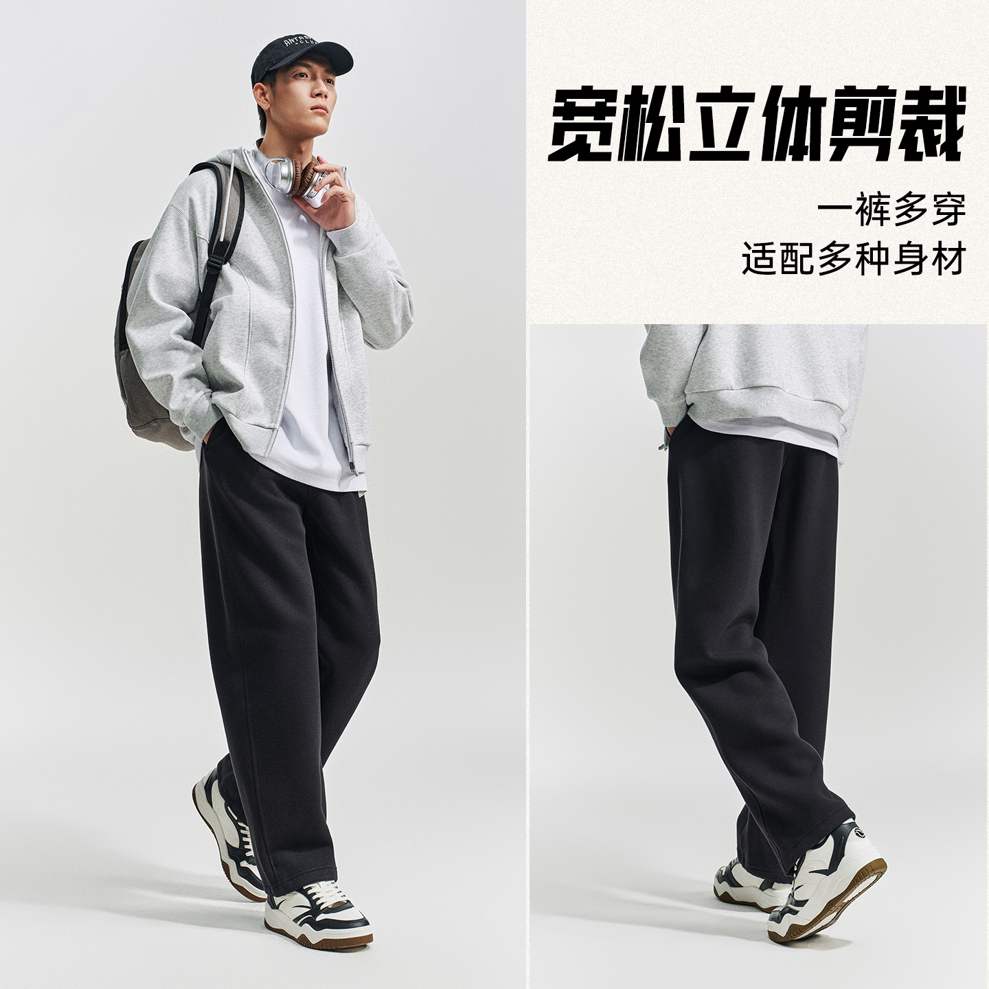 安踏男美式阔腿直筒裤