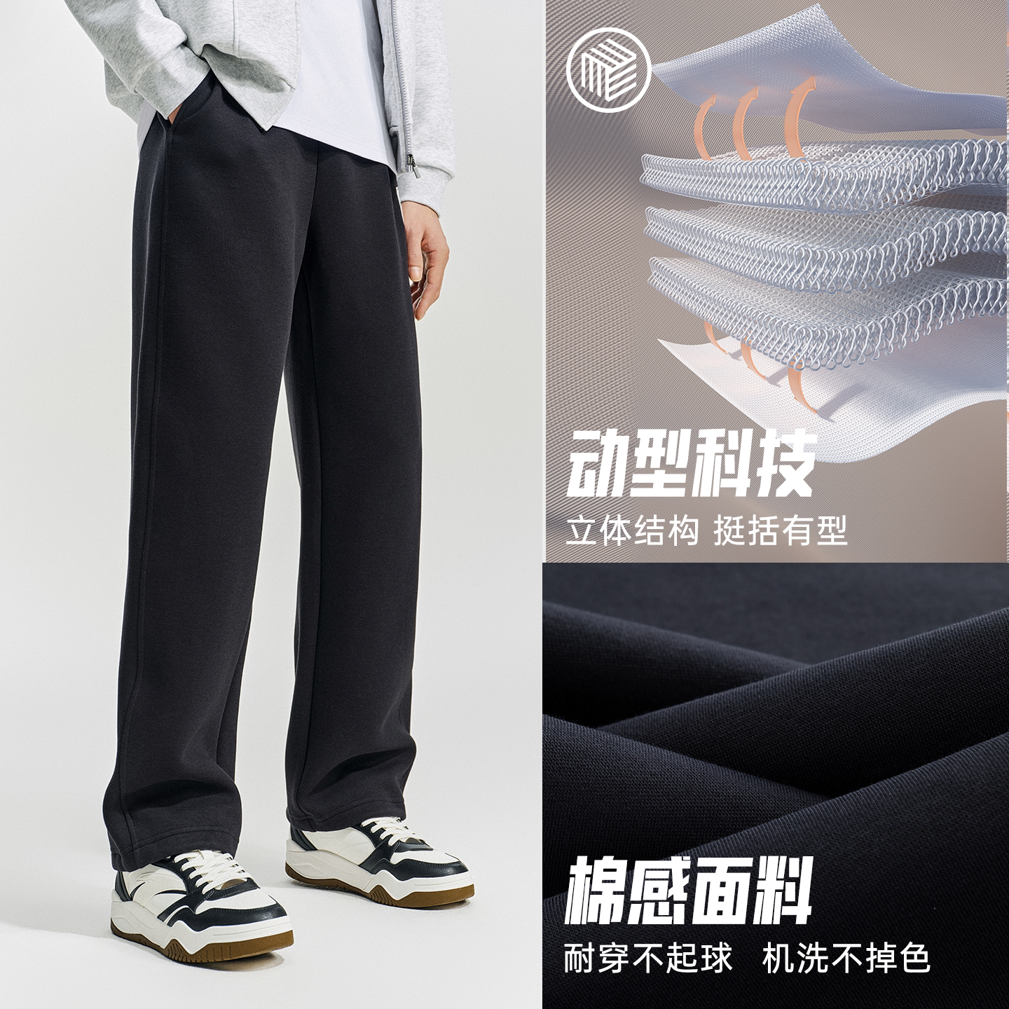 安踏潮流美式休闲长裤男春季新款宽松阔腿针织直筒裤子152618302S