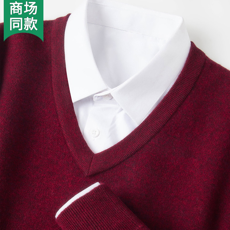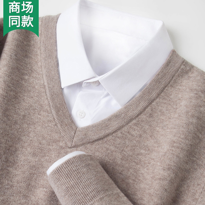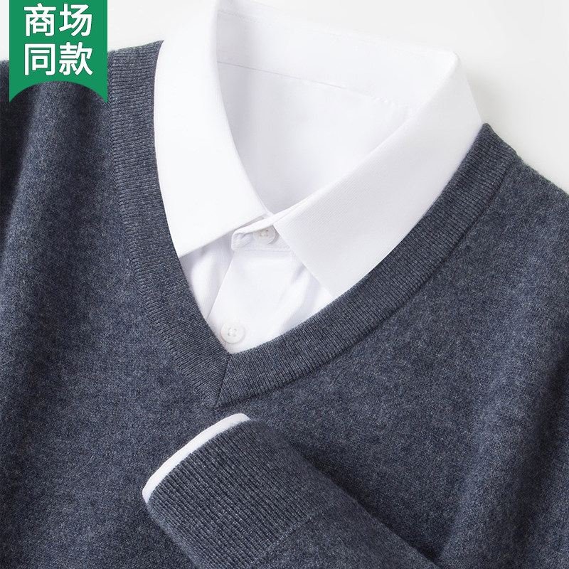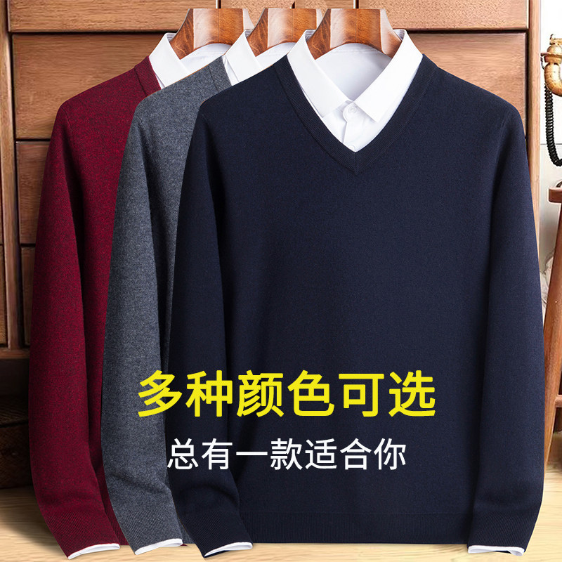 鄂尔多斯市100%纯山羊绒男士V领冬季加厚中老年羊毛打底衫鸡心领