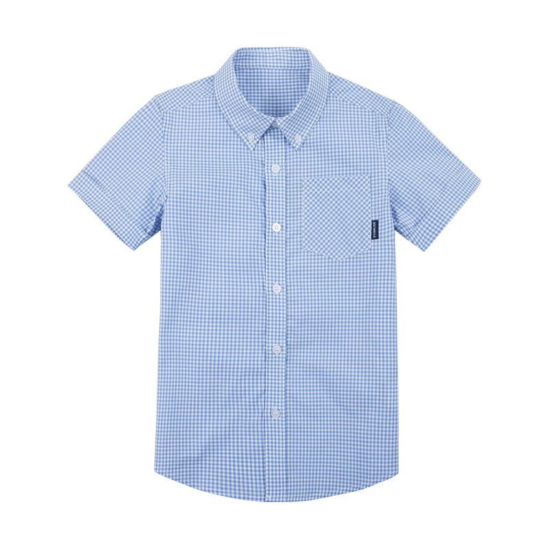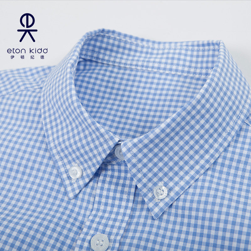 伊顿纪德校服男童短袖衬衫夏季儿童浅蓝格子衬衣16C102