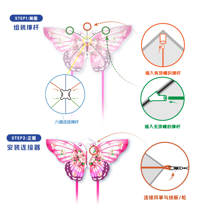 2025年潍坊新款樱花蝴蝶风筝微风易飞卡通专业级儿童手持大人专用