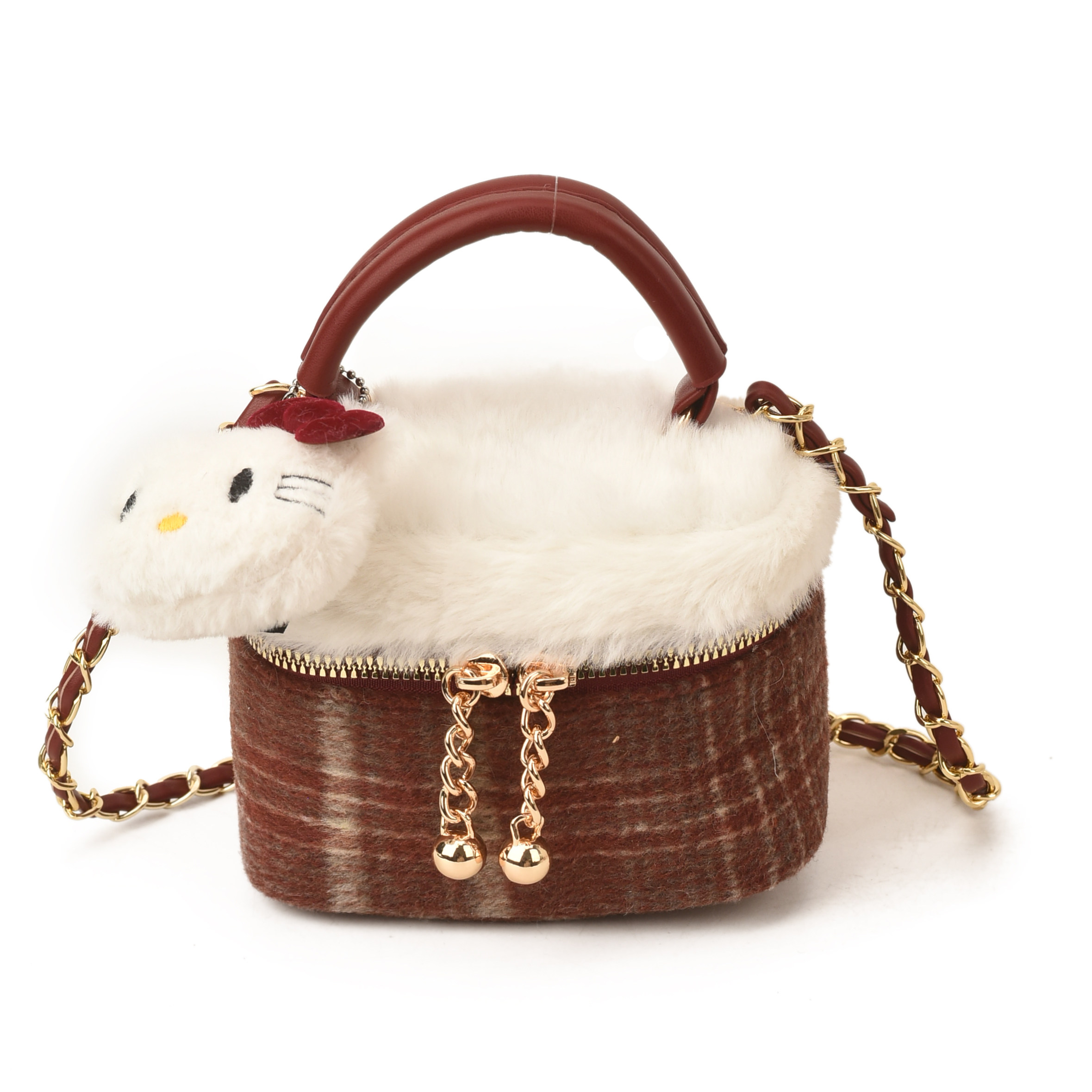 可爱儿童毛绒包迷你链条盒子包