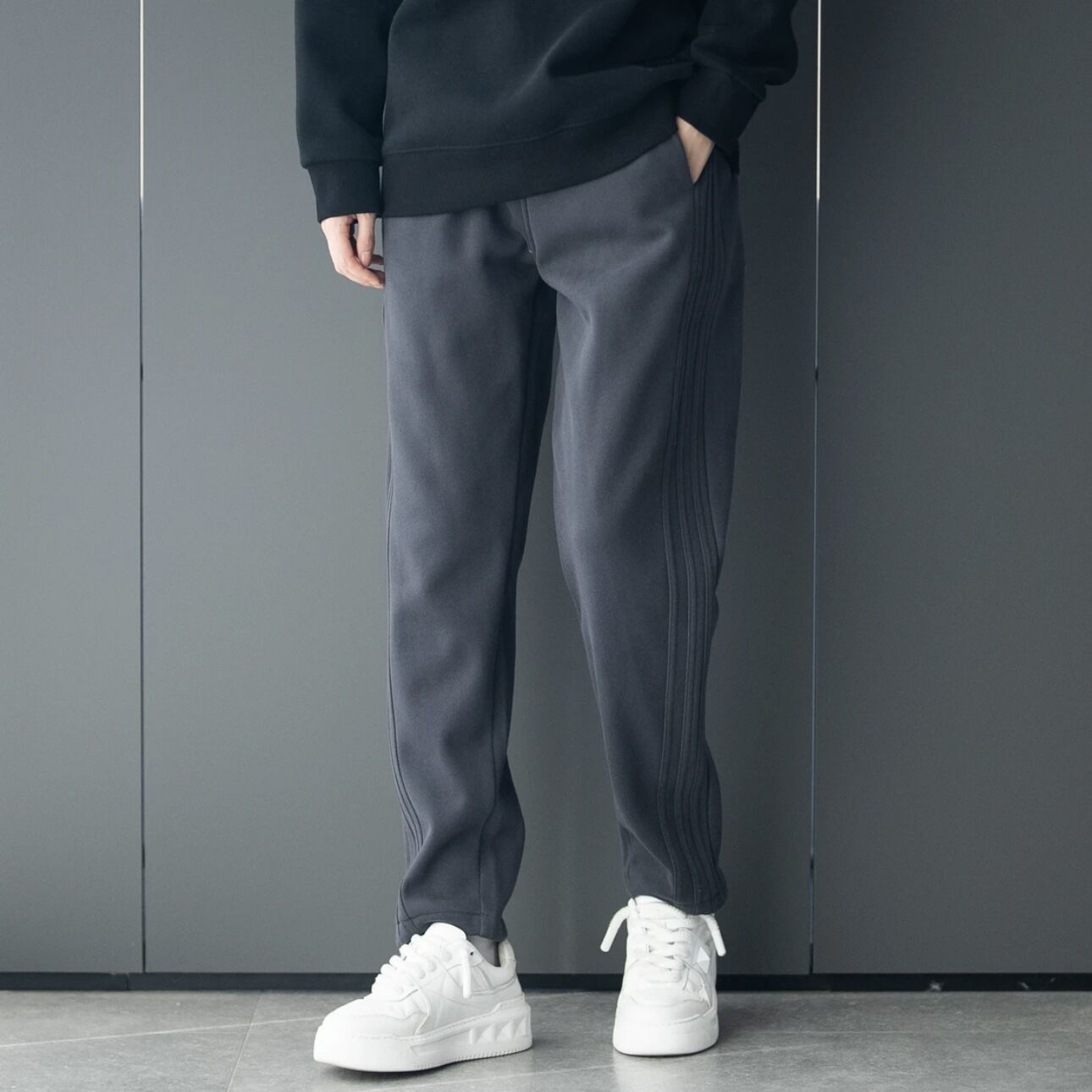 冬季加绒加厚重磅条纹弯刀休闲裤