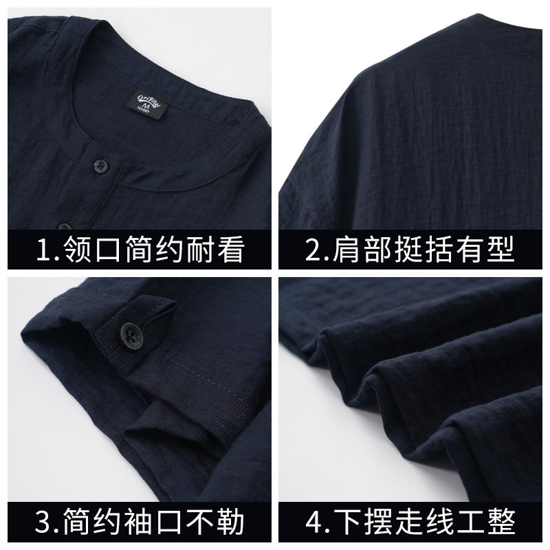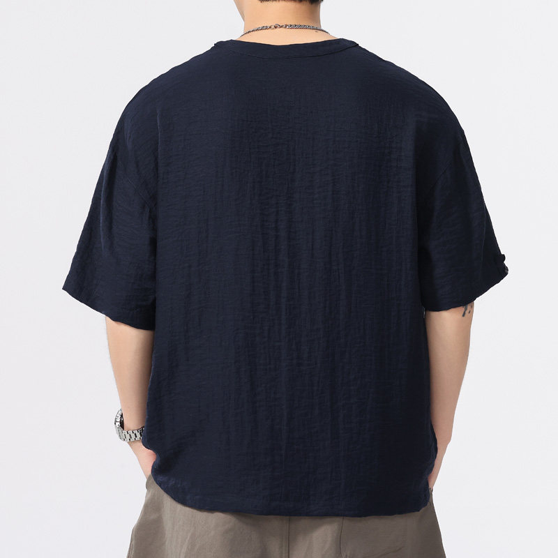 罗蒙夏季薄款亚麻短袖T恤男2025新款冰丝男上衣宽松休闲半袖体恤