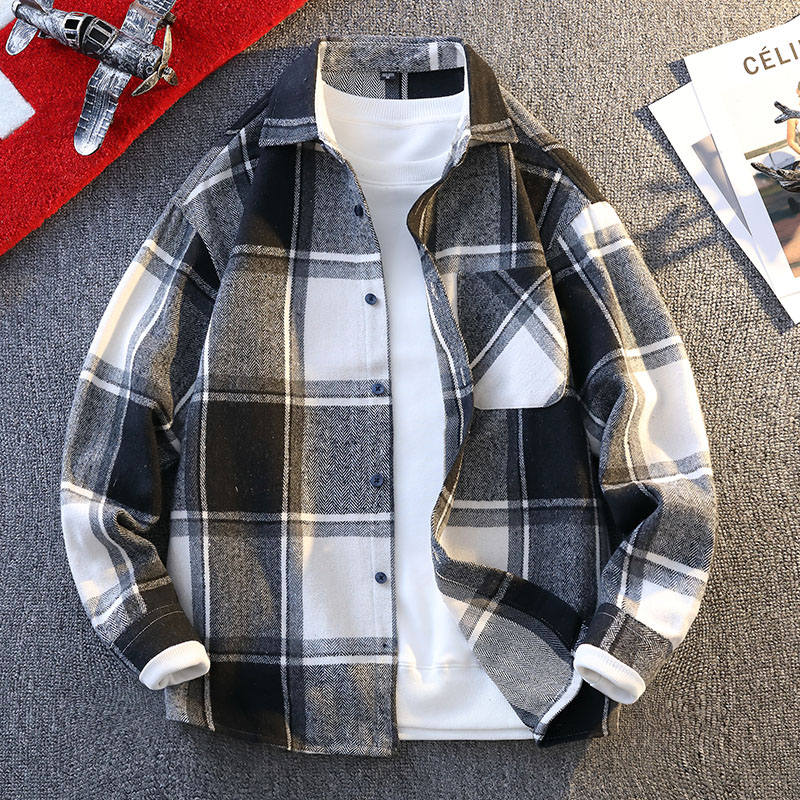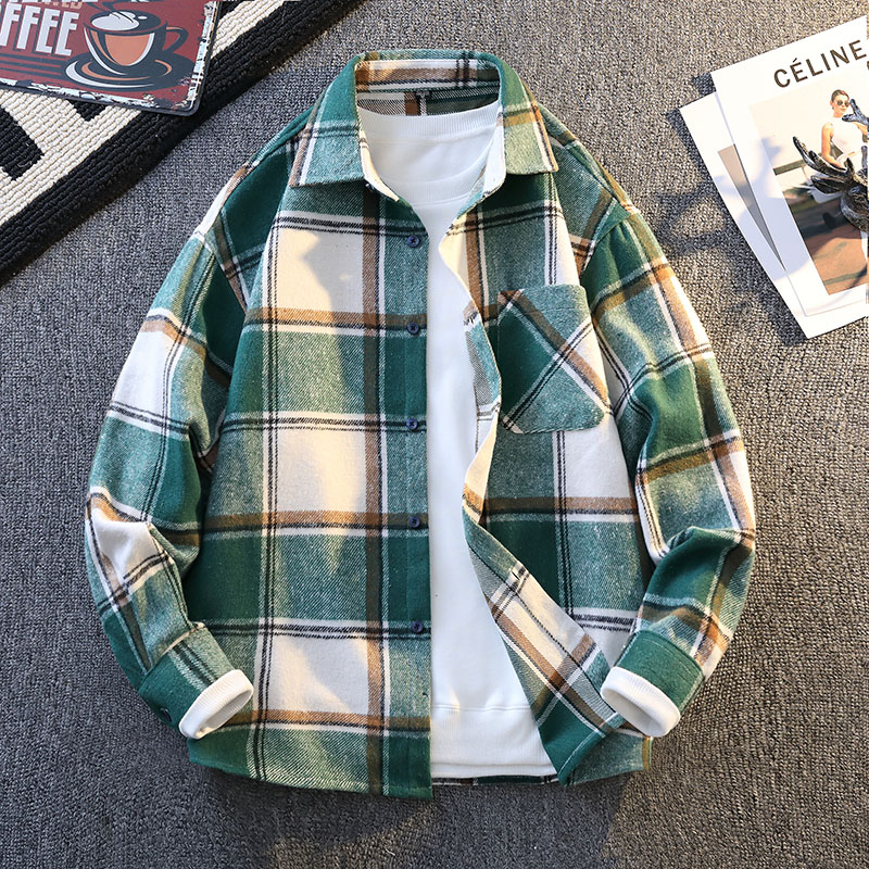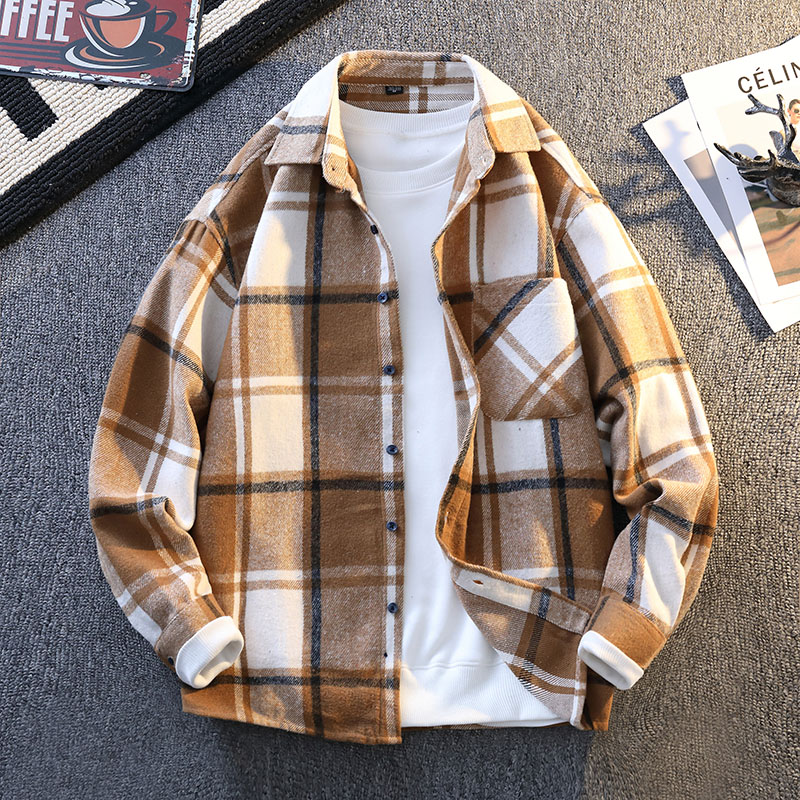 男士春季新款格子衬衫男士长袖宽松休闲潮流港风青少年衬衣外套