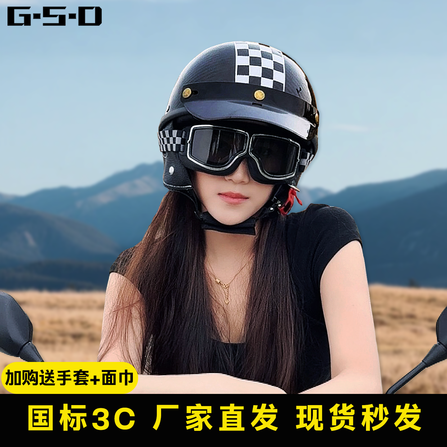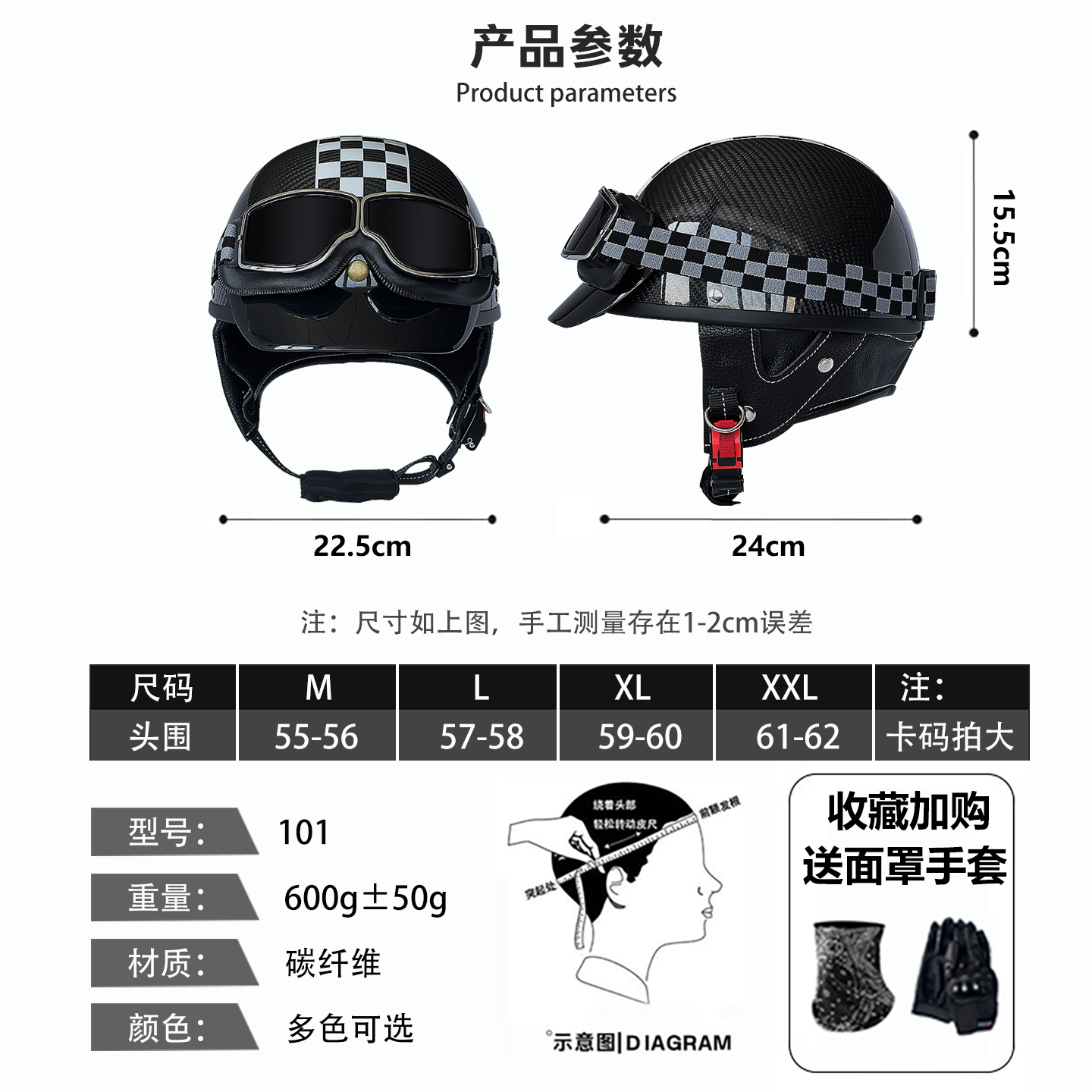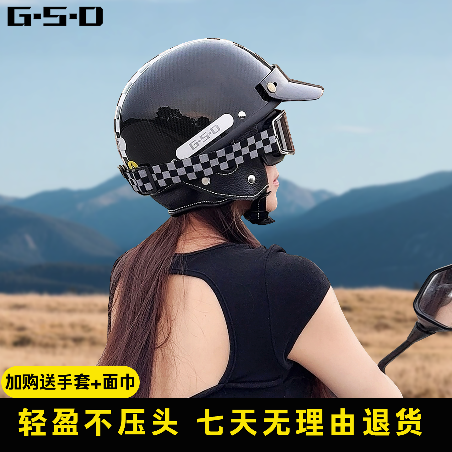摩托车头盔碳纤维超轻夏天瓢盔3C四季巡航机车男女复古半盔哈雷盔