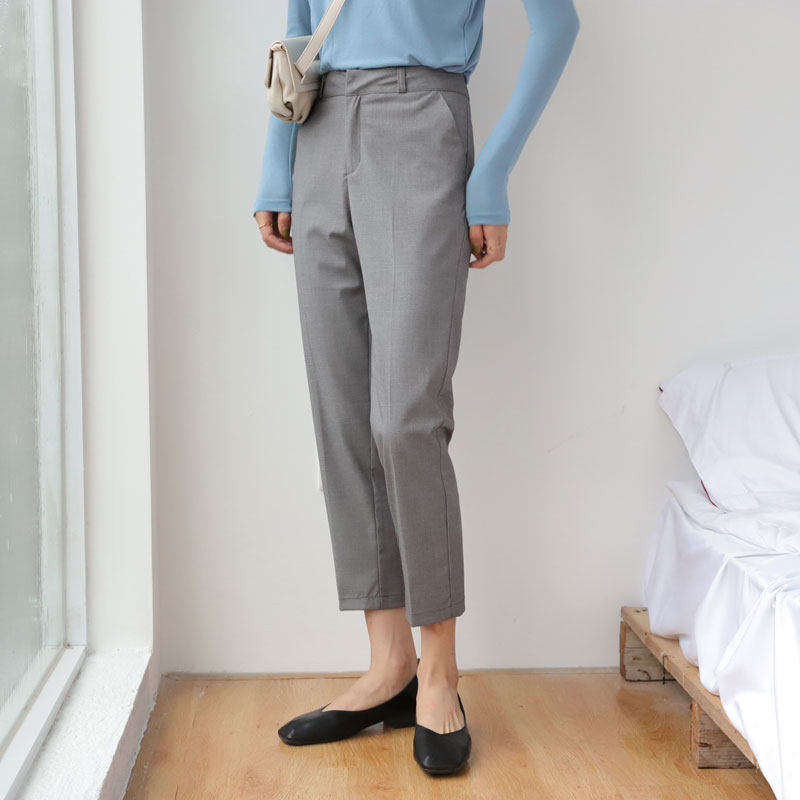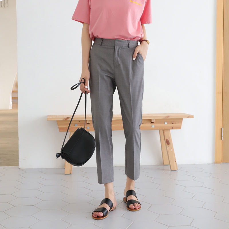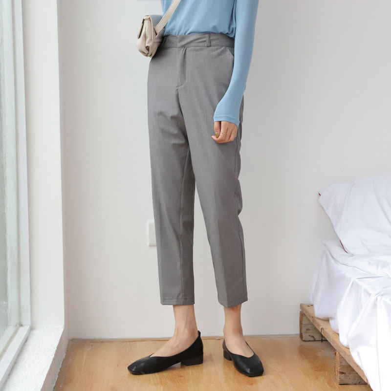 耐看春夏款灰色九分直筒裤通勤烟管西装裤女时尚浅色休闲高腰西裤