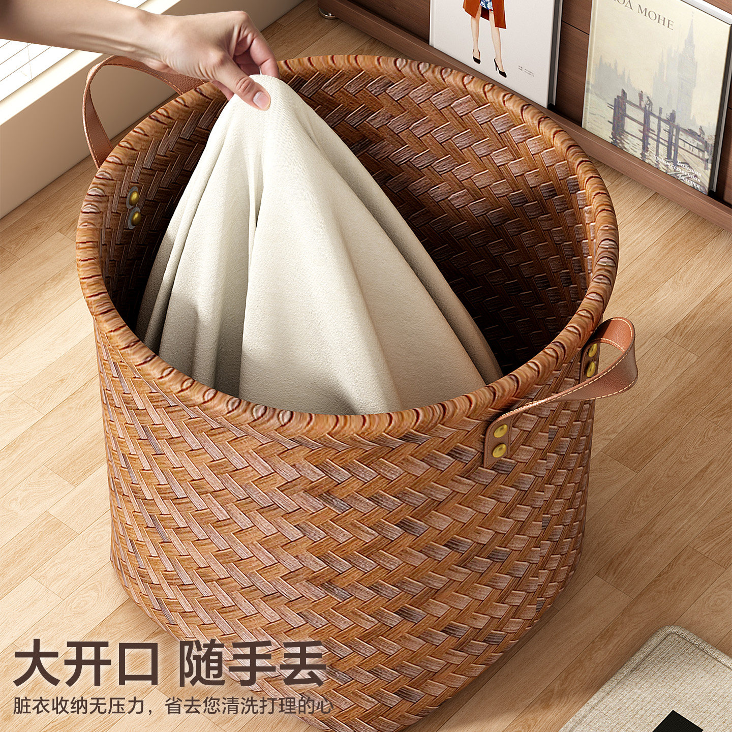 脏衣篓家用手工编织轻奢脏衣服收纳筐大容量脏衣篮洗衣桶玩偶收纳