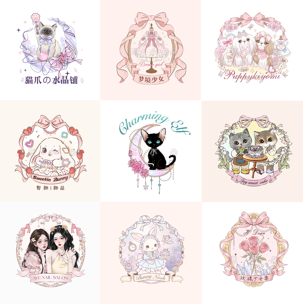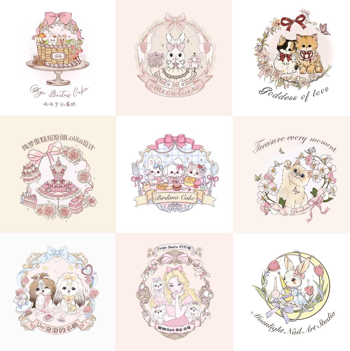 手绘法式复古卡通logo设计品牌商标烘焙花店美团头像门头招牌定制