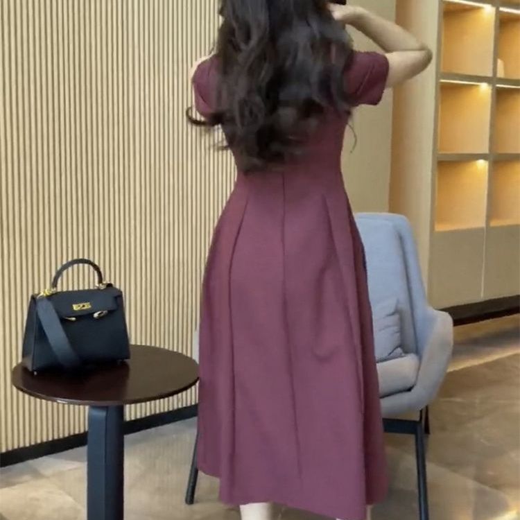 2025夏季网红新款小个子连衣裙女韩版减龄纯色收腰显瘦中长A字裙