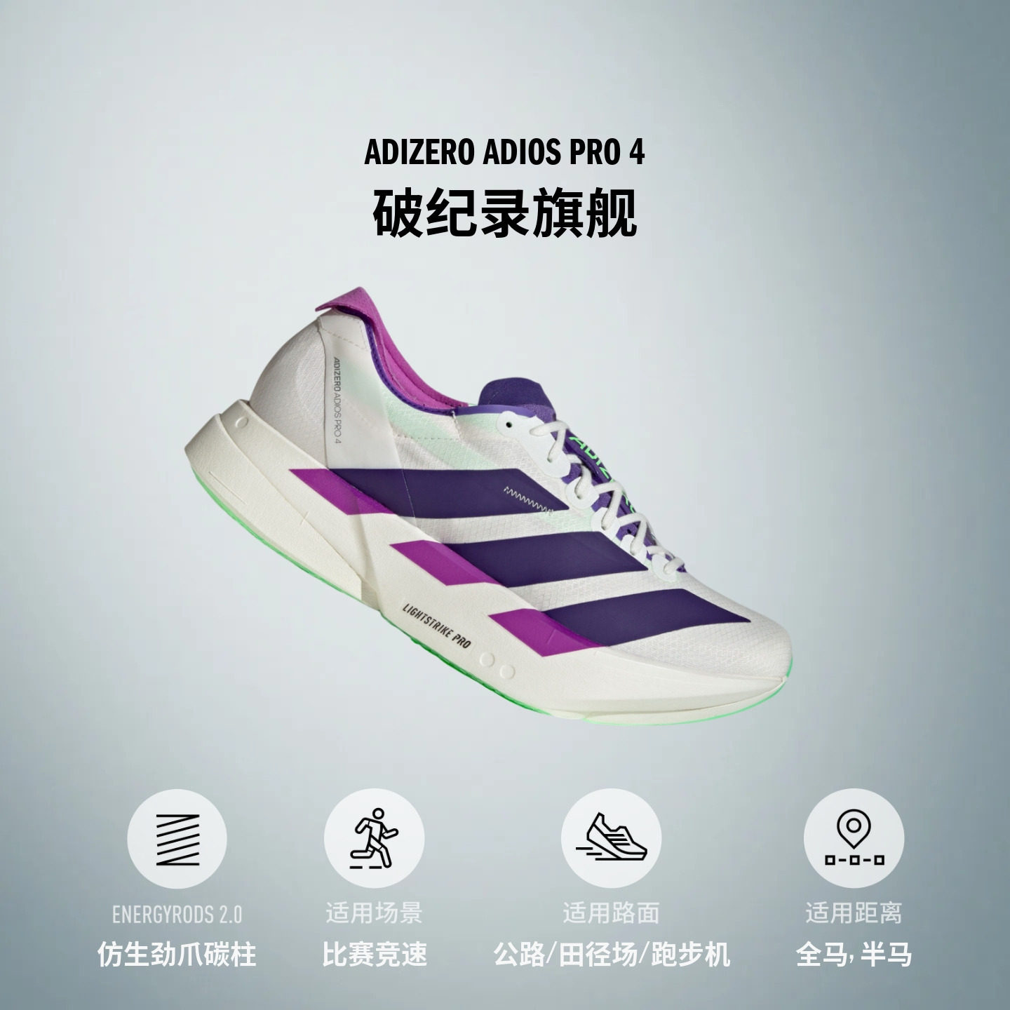 ADIZERO ADIOS PRO 4马拉松专业竞速碳柱跑鞋男女adidas阿迪达斯