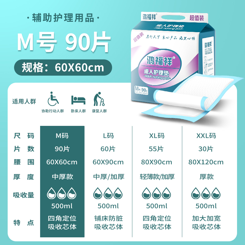 鸿福祥成人护理垫60x90加厚老人隔尿垫特大号一次性尿不湿床尿垫