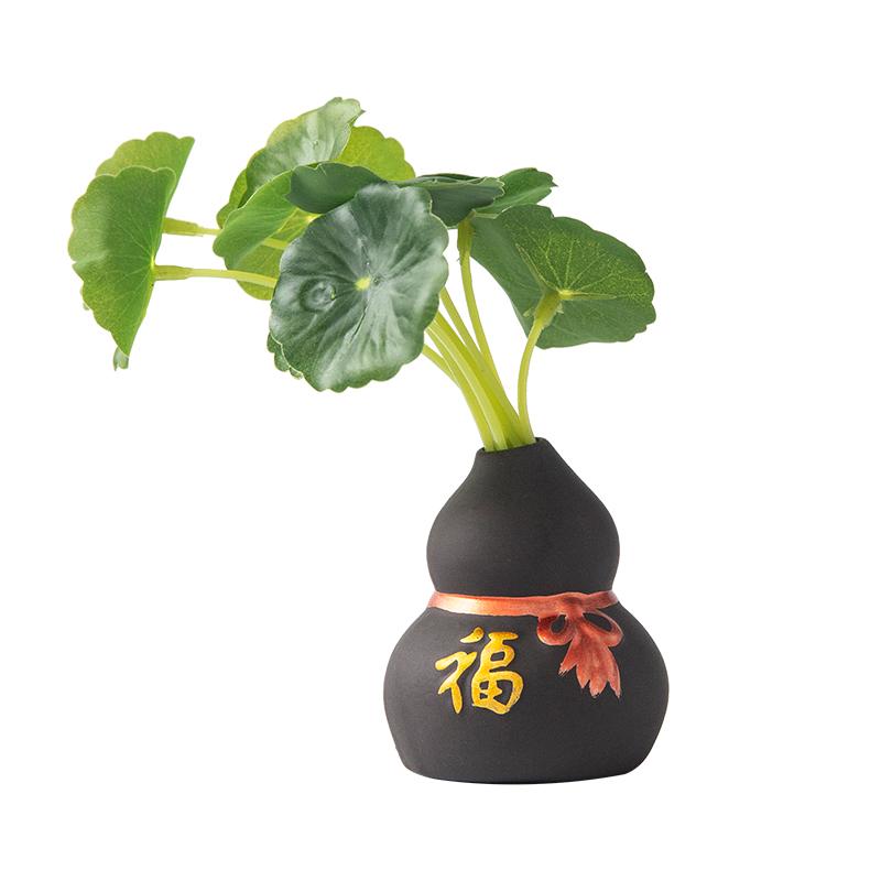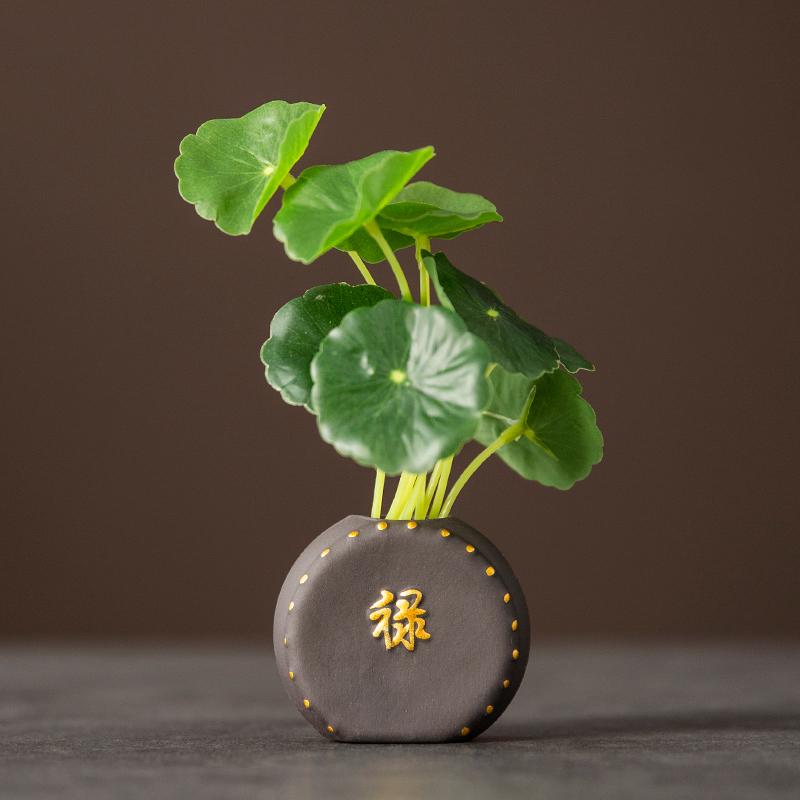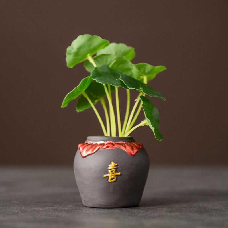 茶宠摆件迷你指尖小紫砂紫彩绘花瓶禅意小号五福花器茶桌配件可养
