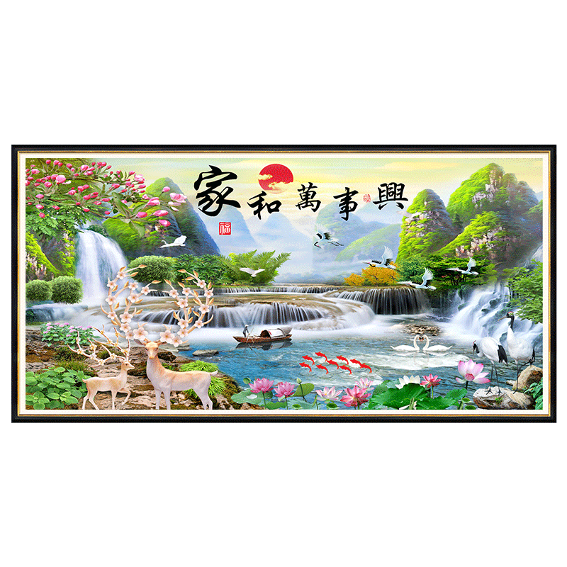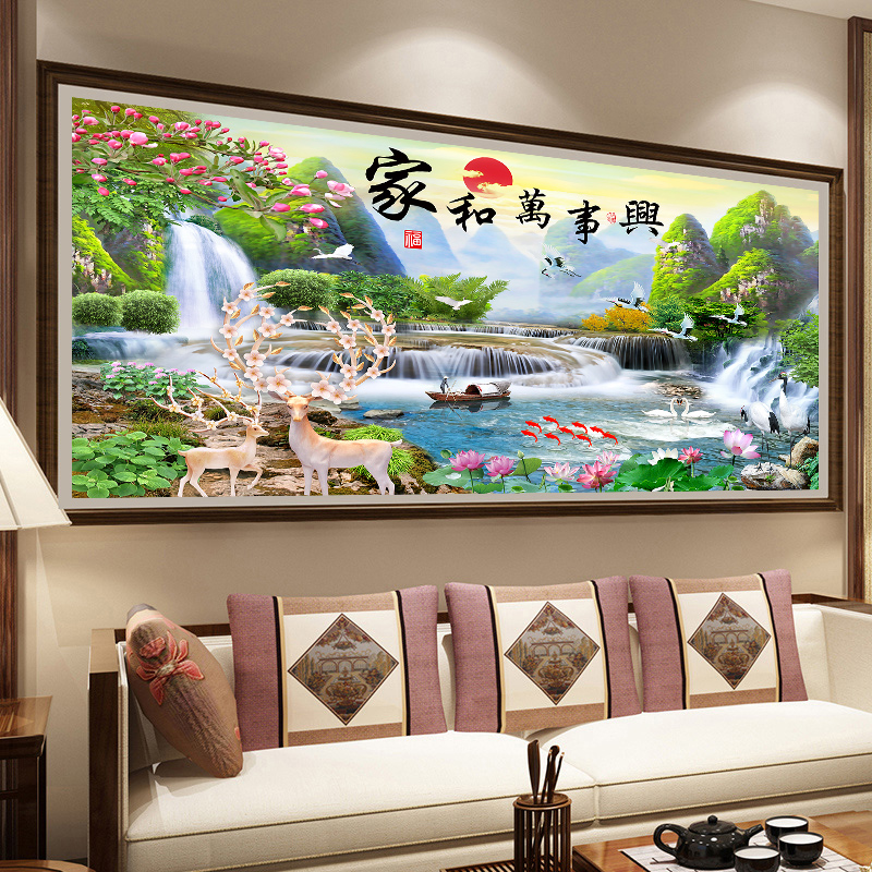印花线绣十字绣2025新款客厅家和万事兴麋鹿手工刺绣满绣山水风景