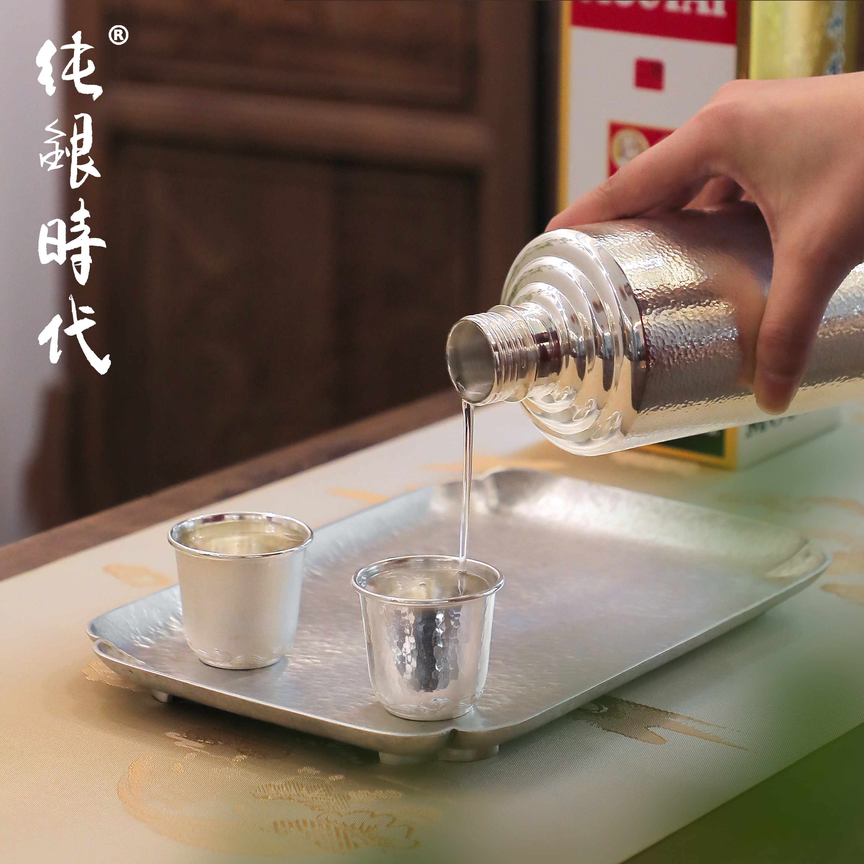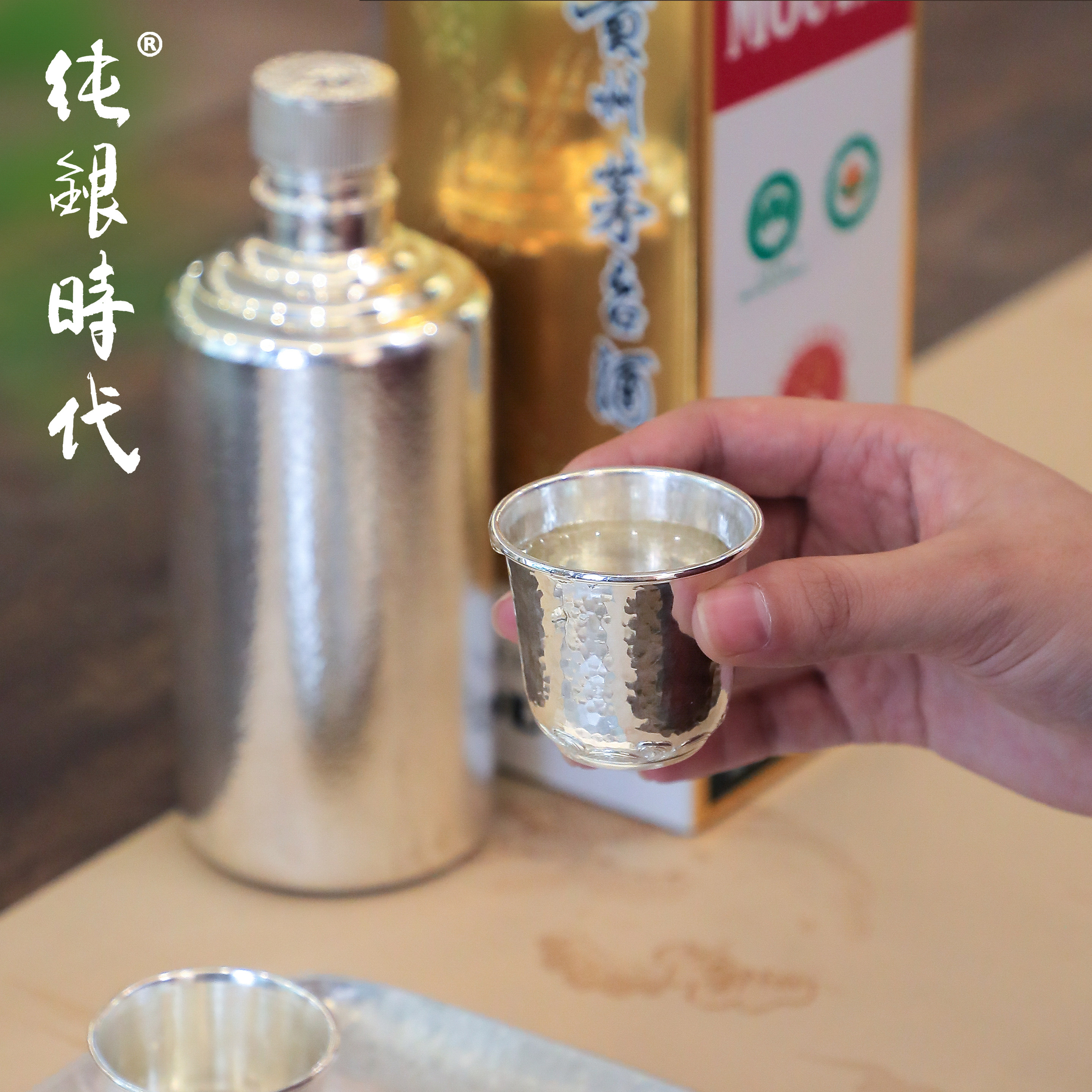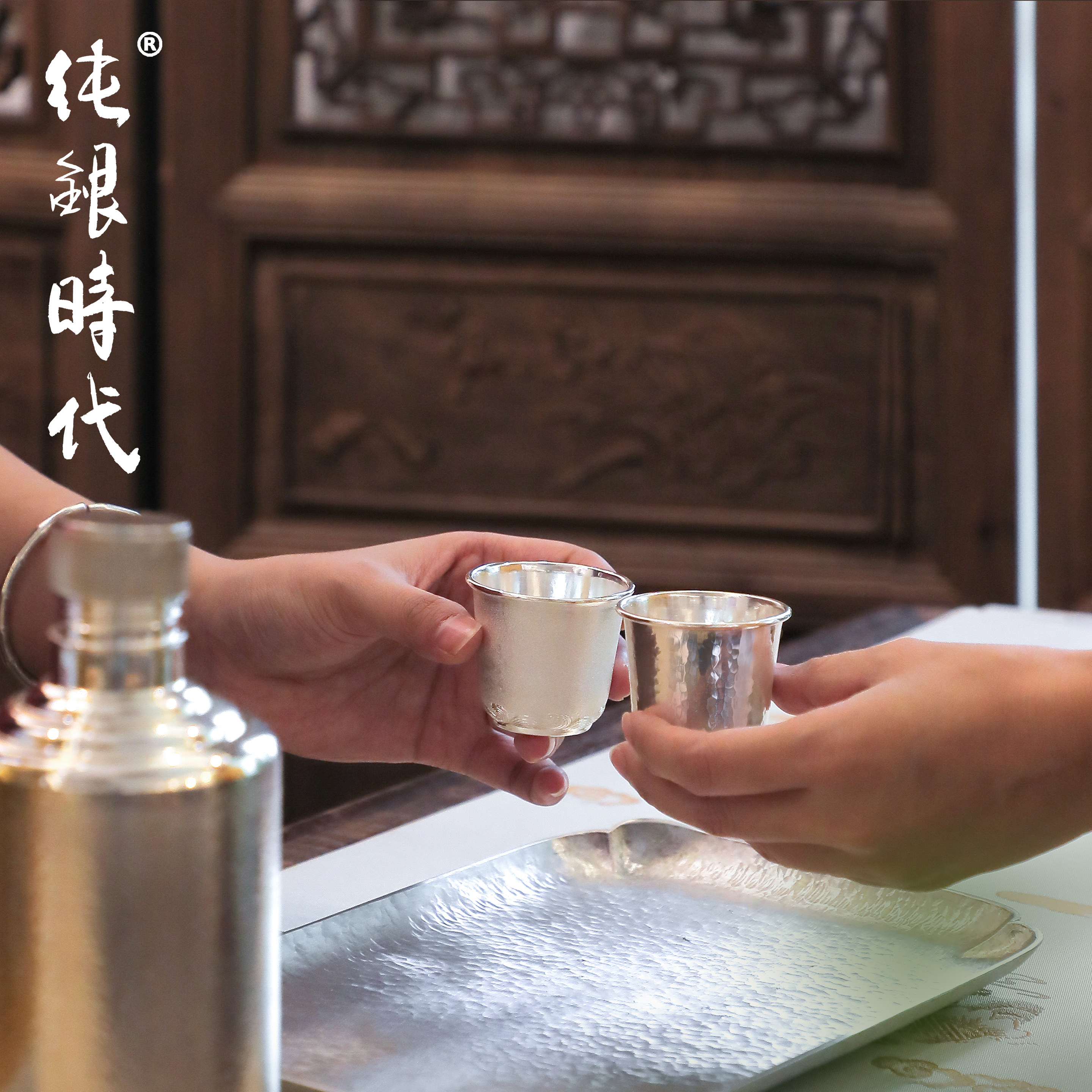 纯银时代 卷浪锤纹小酒杯纯银999手工银杯简约家用白酒杯40ml
