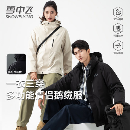 【三合一鹅绒】雪中飞2025冬季新款情侣外套软壳可脱卸内胆羽绒服