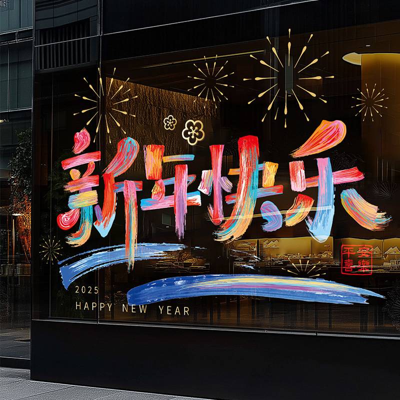 新年装饰窗花纸玻璃贴画静电贴2025蛇年新款橱窗过年春节元旦新年