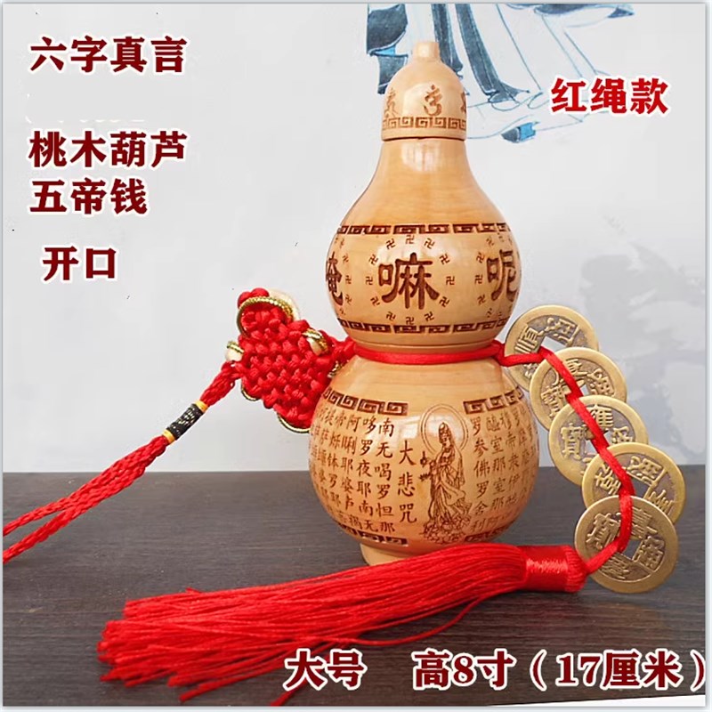 桃木葫芦大悲f咒六字真言大明咒开盖空心开口挂件办公室卧室摆设