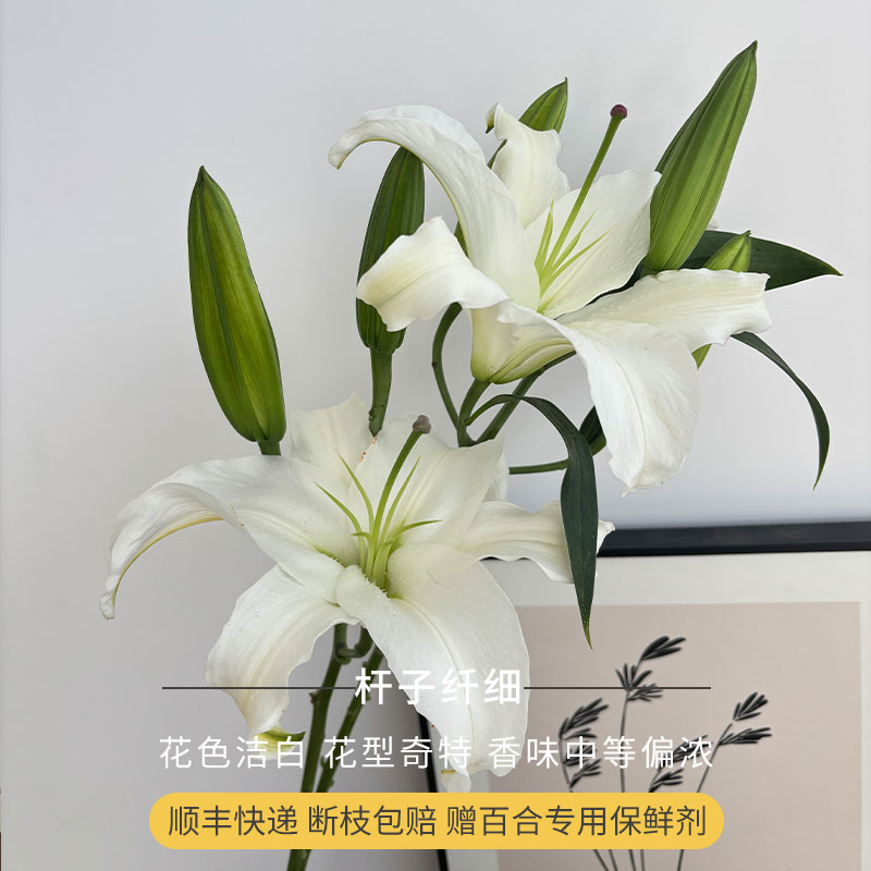 A级西伯利亚白色香水百合花鲜花大花苞家用插花顺丰云南基地直发