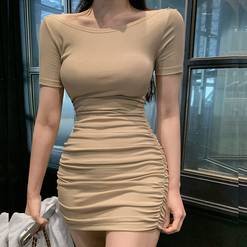 新款性感褶皱修身短袖连衣裙夏季紧身显瘦气质裙子辣妹短裙