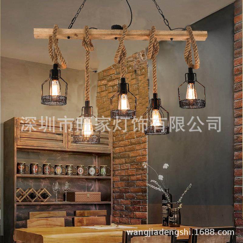 工业风复古酒吧咖啡厅餐厅创意个性吧台服装店美发店前台麻绳吊灯